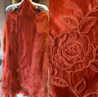 The shirt has small bead booties scattered all over the shirt front with embroidered Rose flower design beautifully made with Dori, Beads and thread.