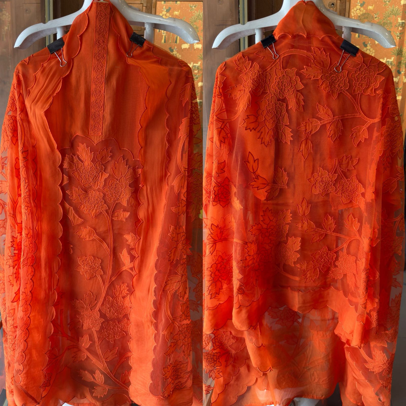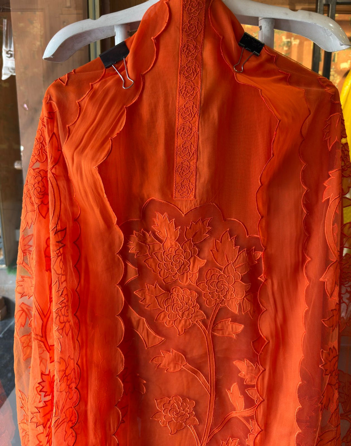 Soft organza unstitched Kurta with Appliqué work on the shirt daaman beautifully done, Floral design.