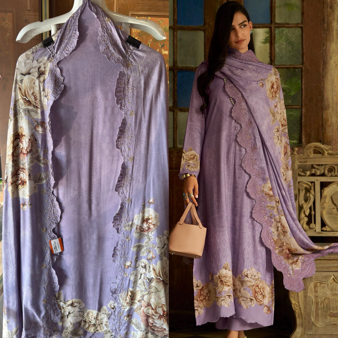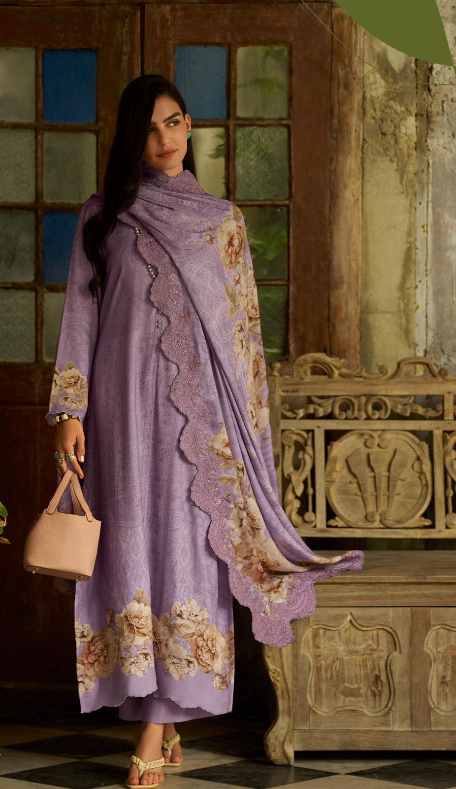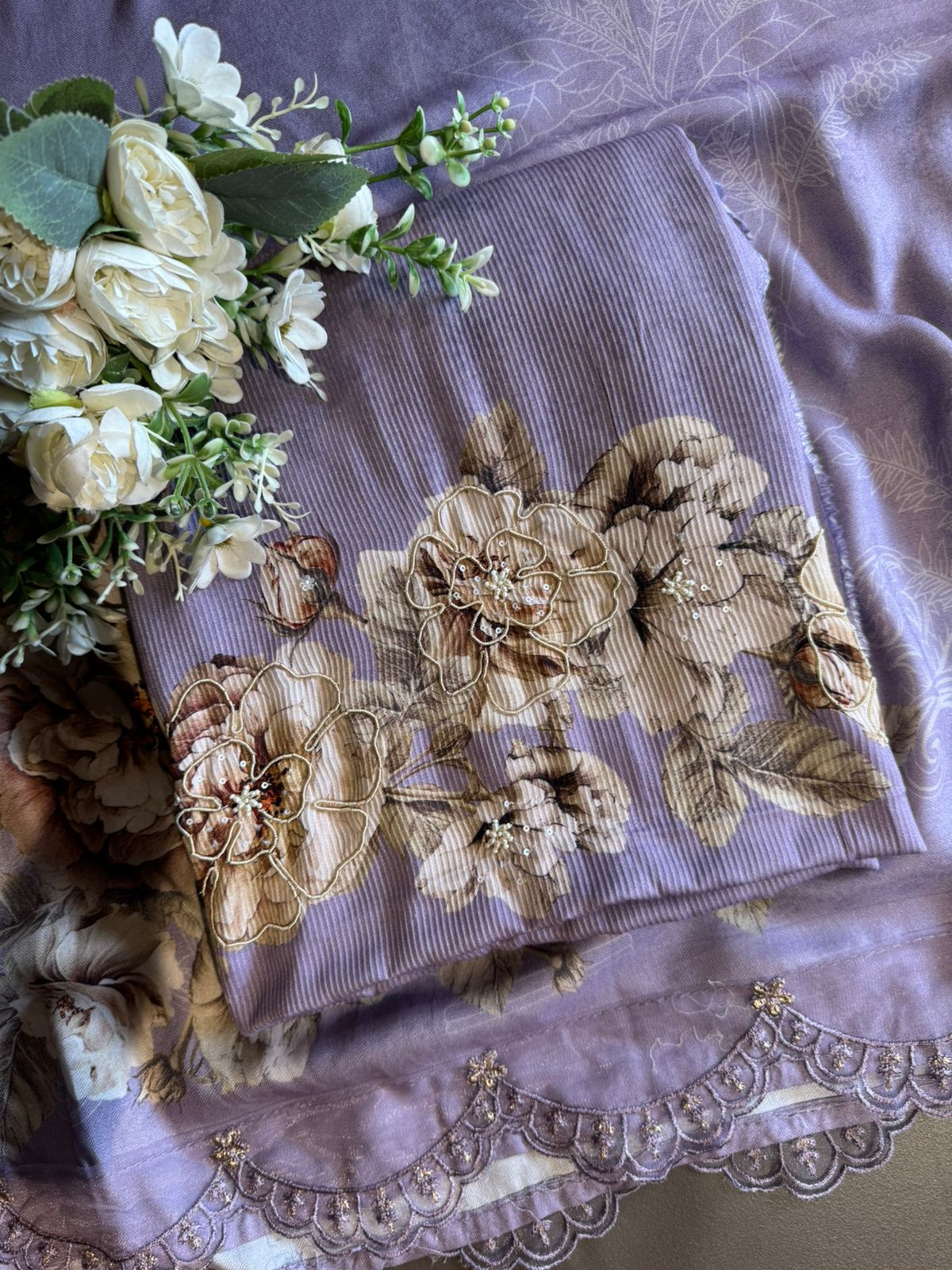 The shawl has beautiful digital printed flower concept.