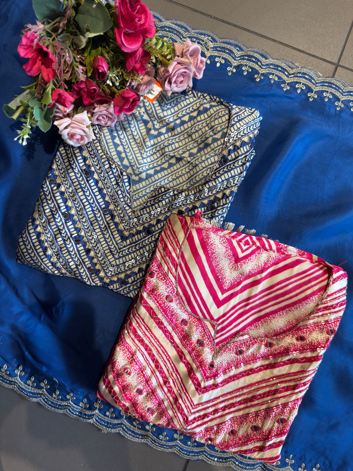 A vibrant Navy Blue paired with white accents, creating a lively and festive contrast.