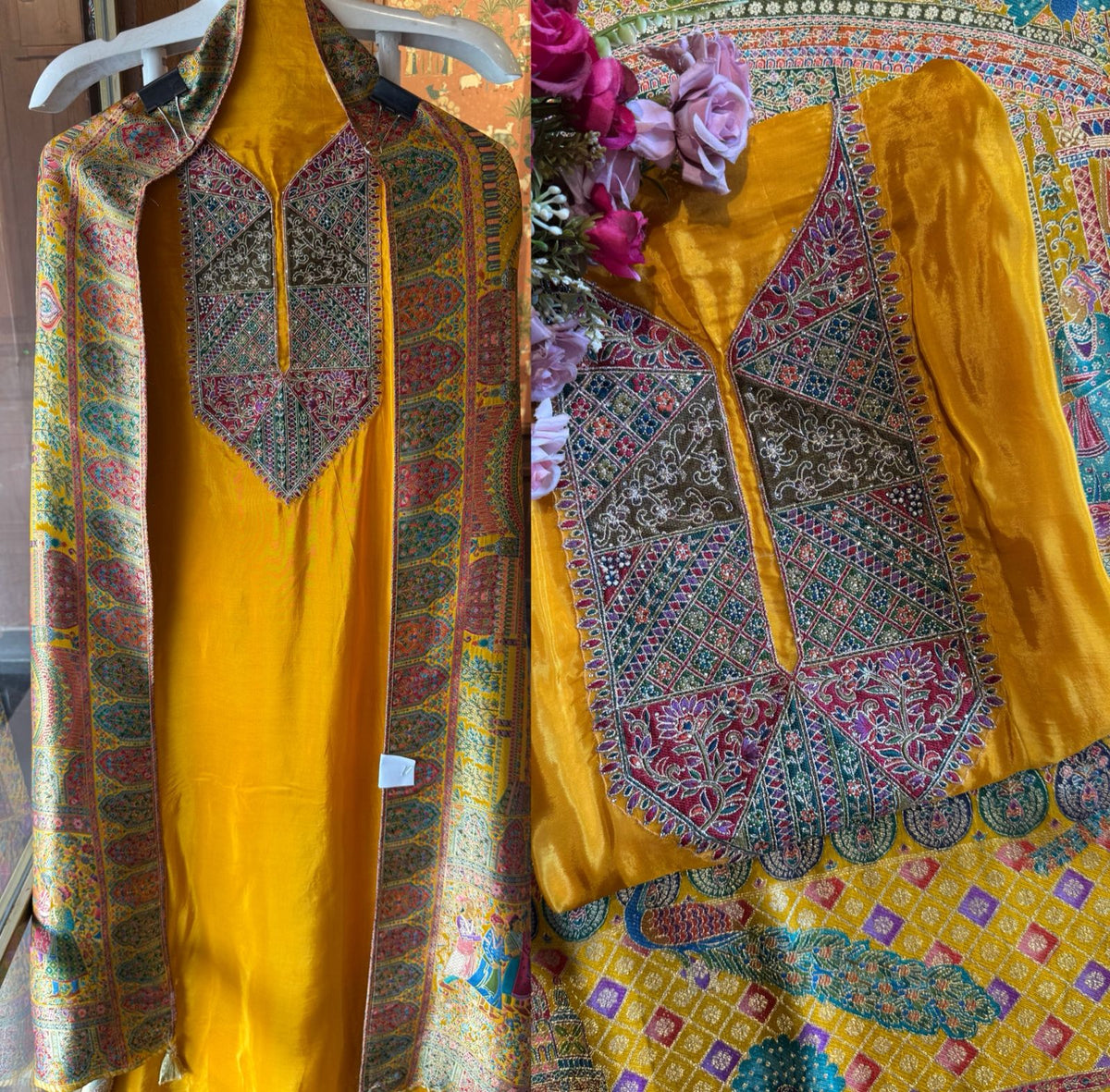 The embroidery is detailed with Aari / Zari / Kashida-inspired work.