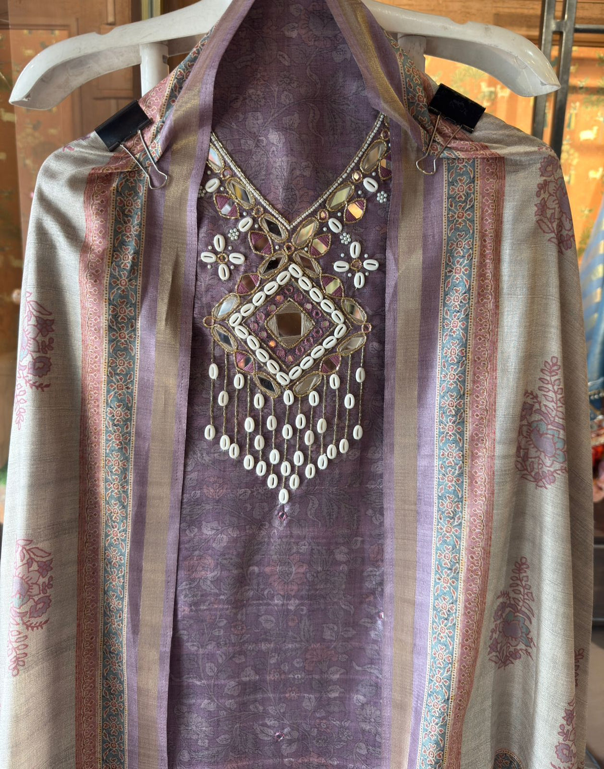 Pure Silk jacquard Unstitched Suit set ,Self digitaljacquard shirt.