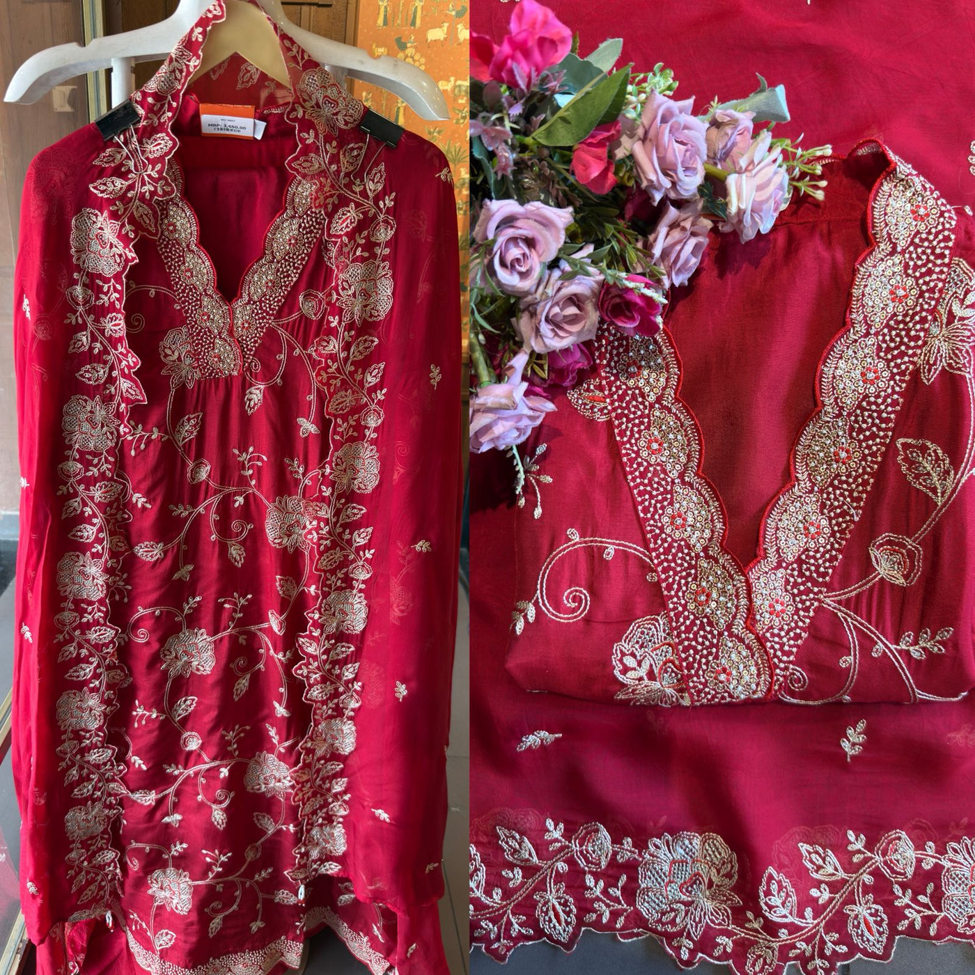 Soft organza dupatta with Cutwork done on the two longer sides , Thread work and zari embroidery done.