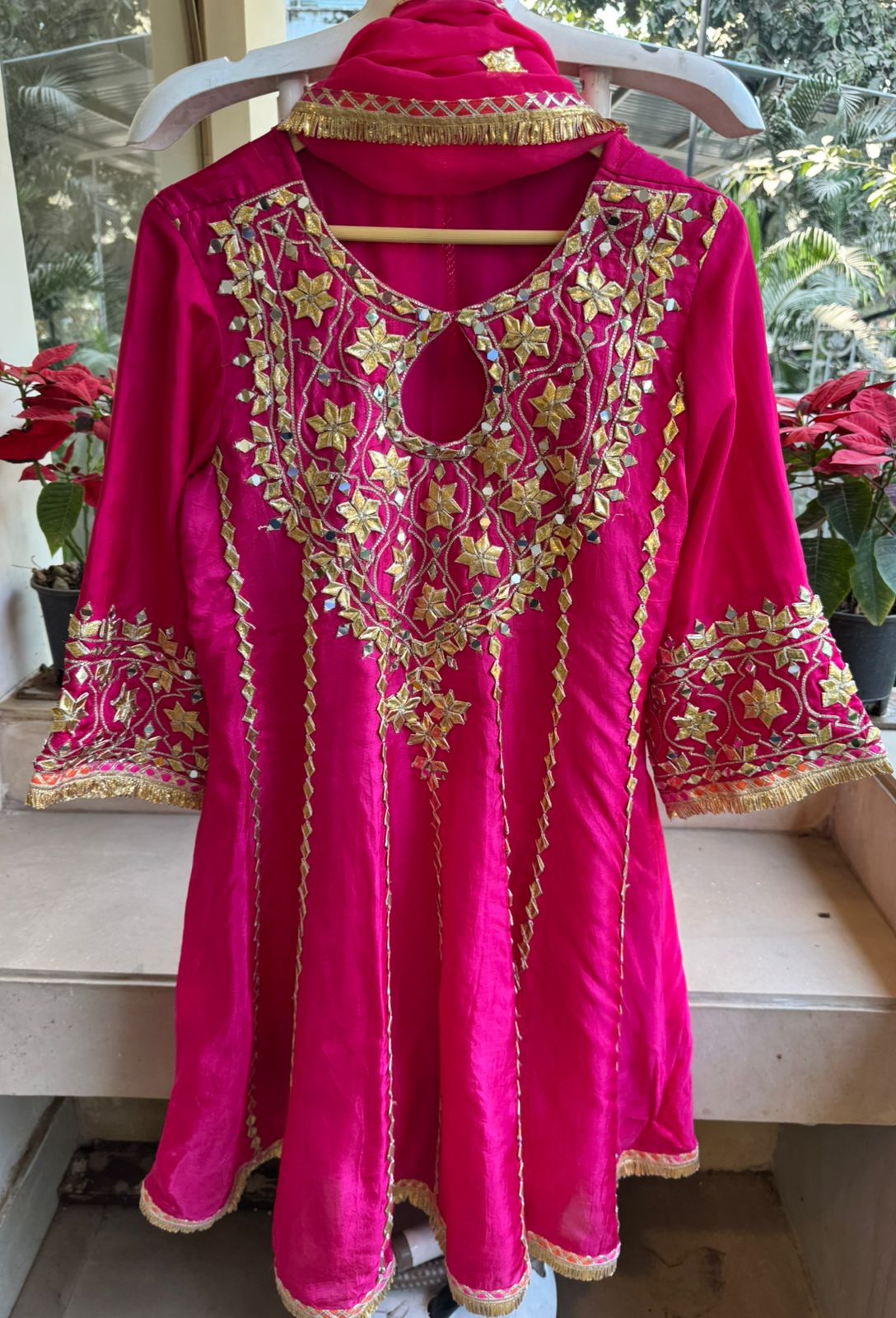 Silk anarkali set/Ethnic suit set with heavy Gotta/mirror work. (STITCHED)