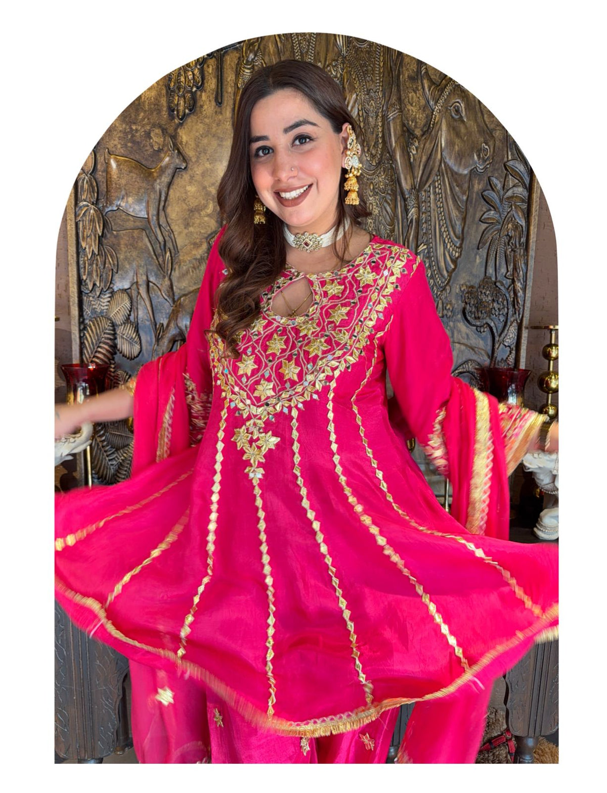 It’s a beautiful Flairy Anarkali set with Gotta laces.