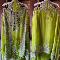 Beautiful ombré shaded unstitched Suits on Burberry tissue featuring heavy mirror work and embroidery.