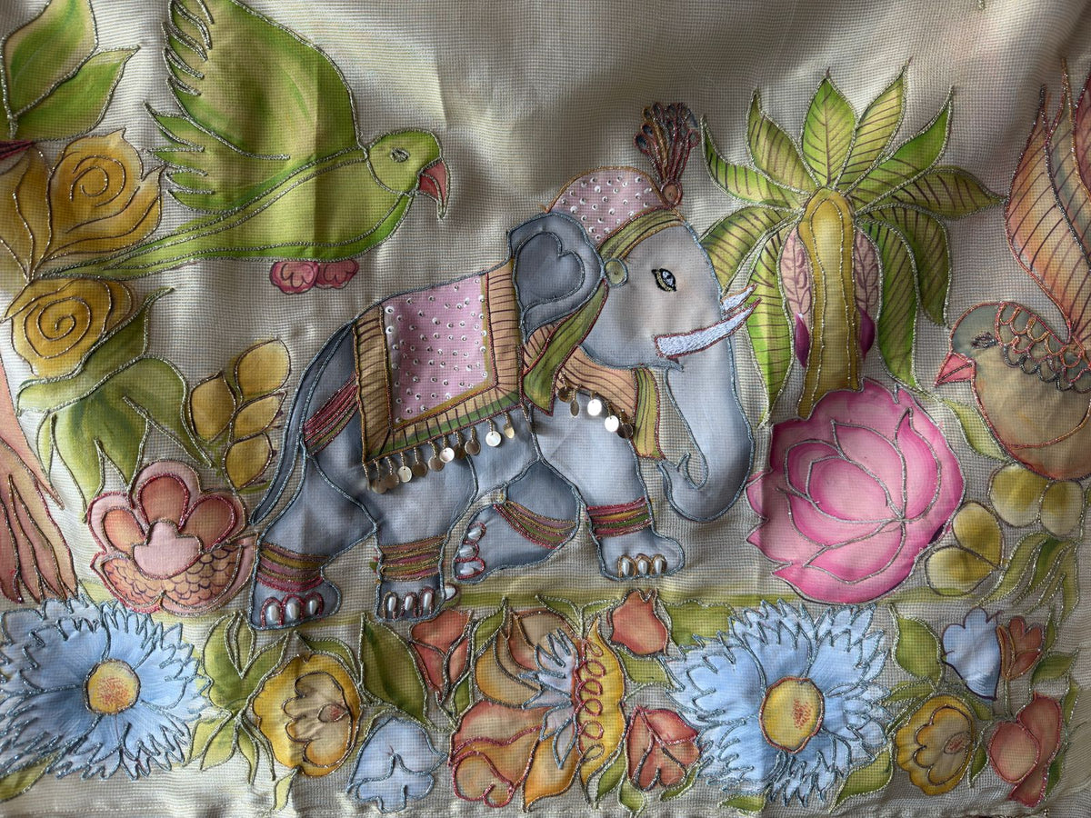 A beautifully illustrated decorated elephant motif (regal, festive, traditional) symbolising power, Positivity, Prosperity.