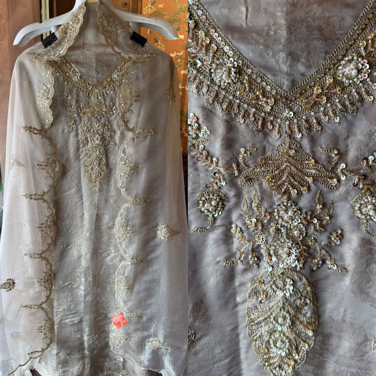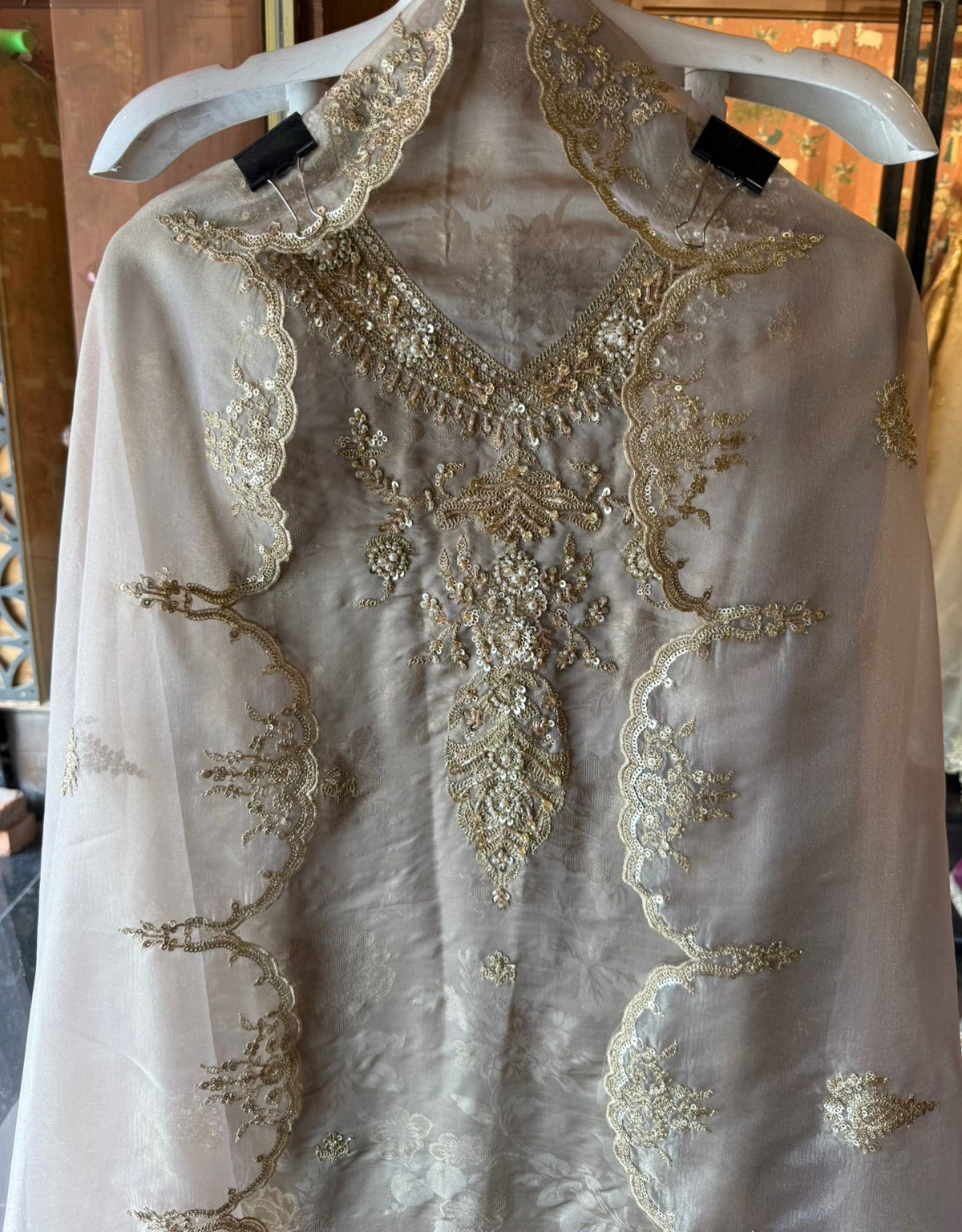 Pastel Elegance — Luxurious Hand-Embellished Organza Ensemble