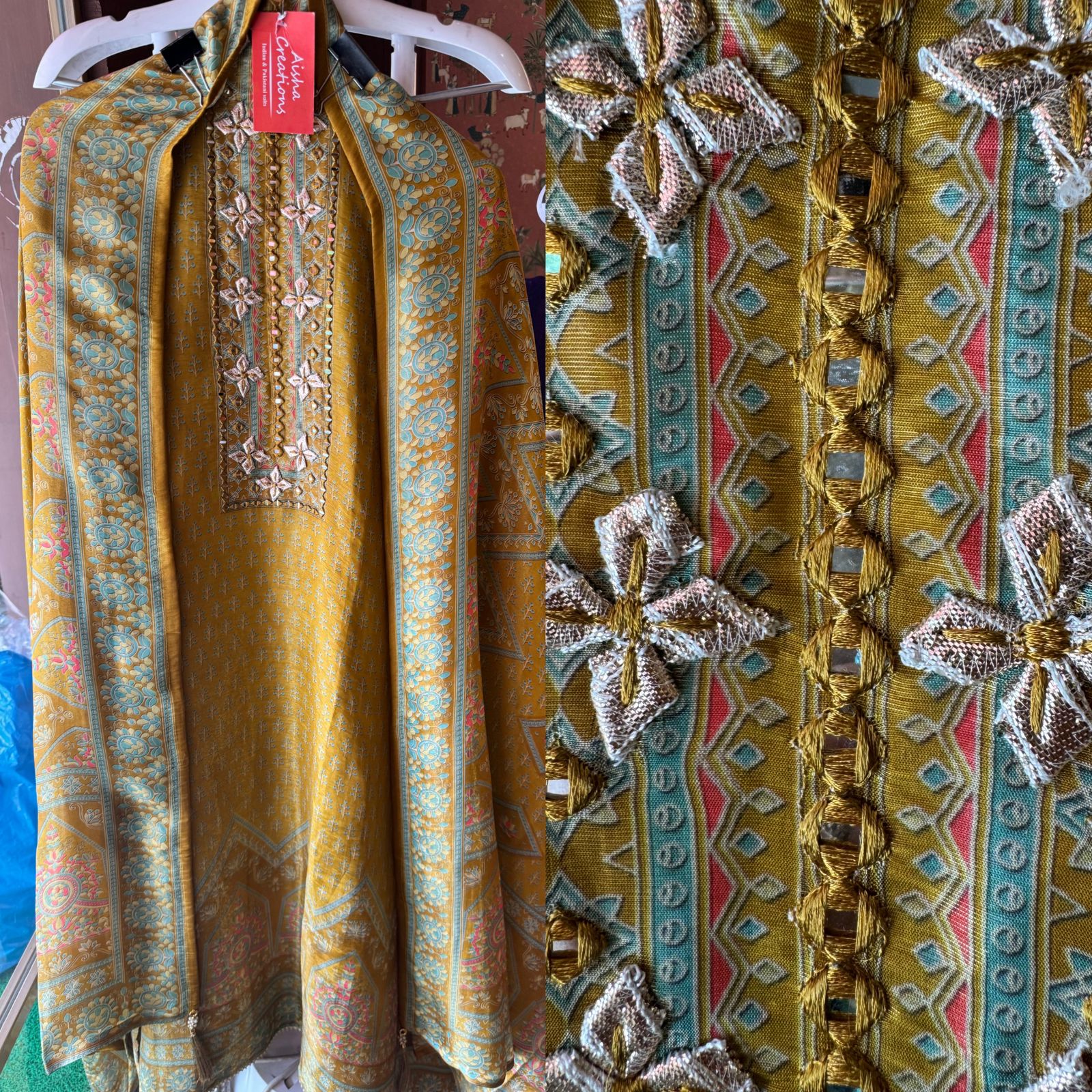 Pure shimmer tissue Digital printer concept , Very classy with sabyasachi inspired print overall the shirt front and back