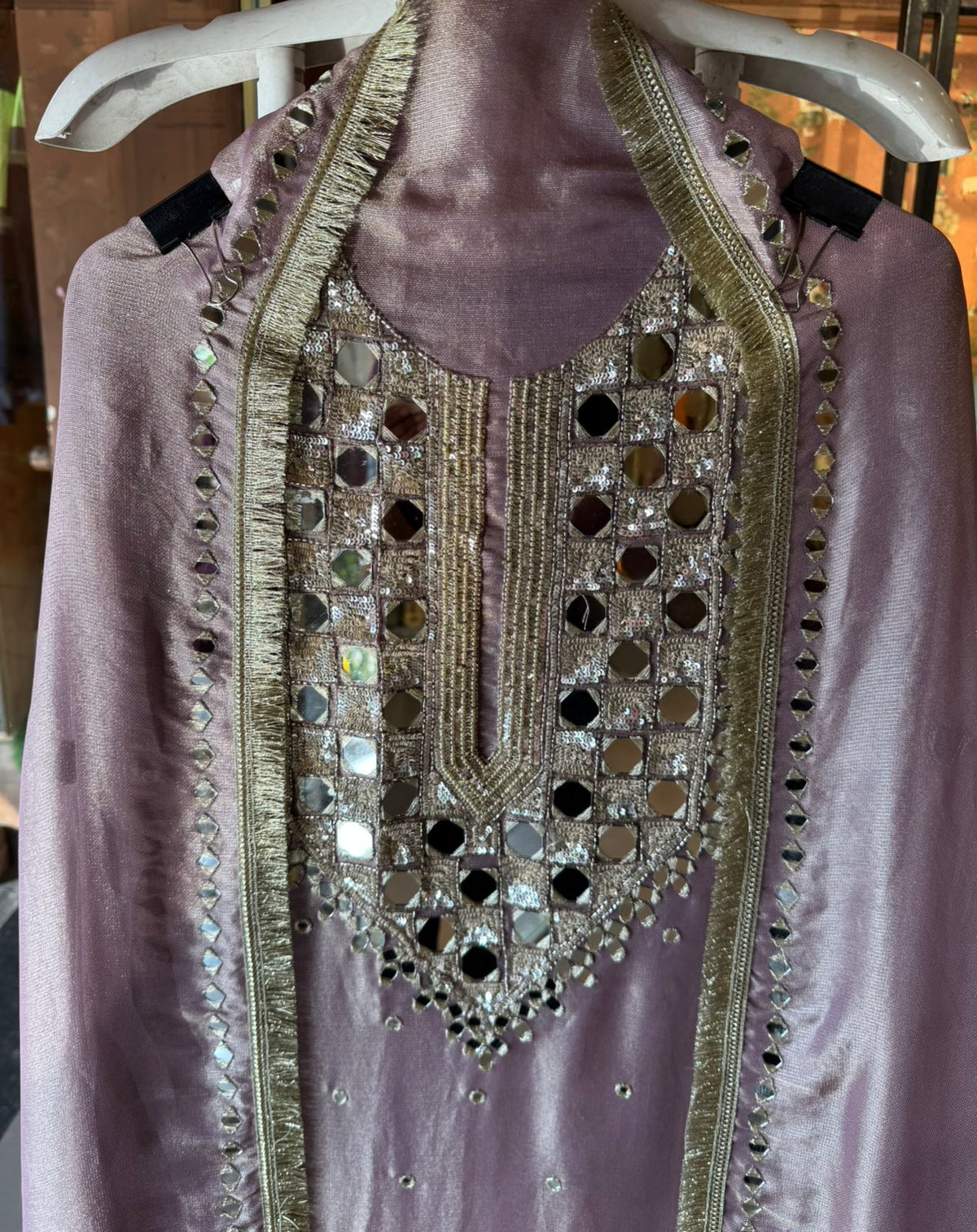 Simmer Tissue Mirrorwork Unstitched Suit with Shimmer Dupatta