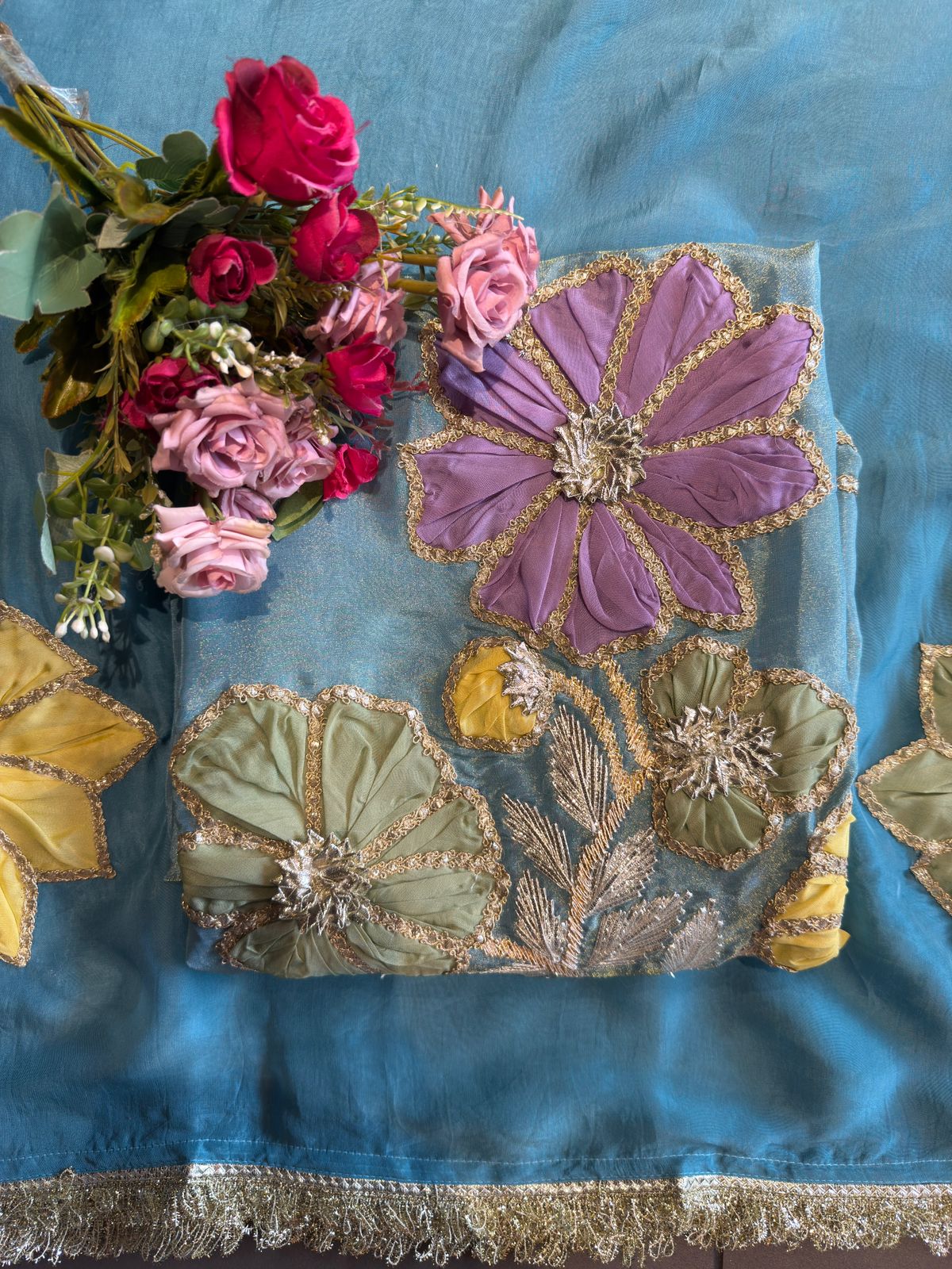 • Embellished with Gotta, ribbons in delicate floral patterns.