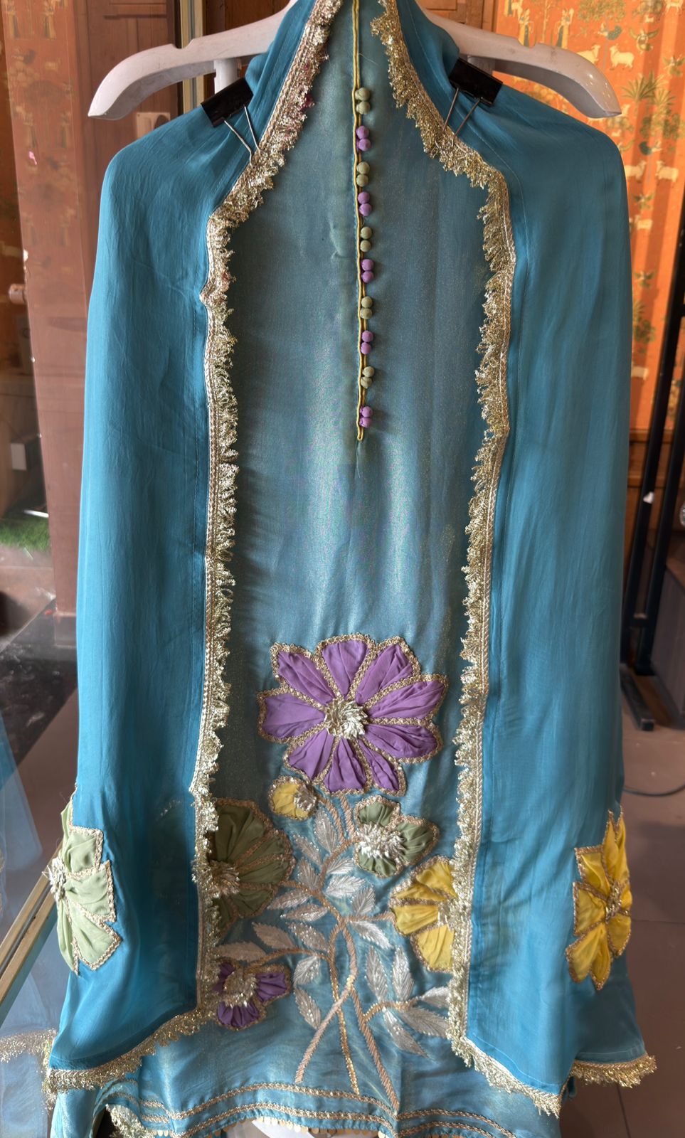 • Hemline and dupatta borders feature Gotta Kunari laces.