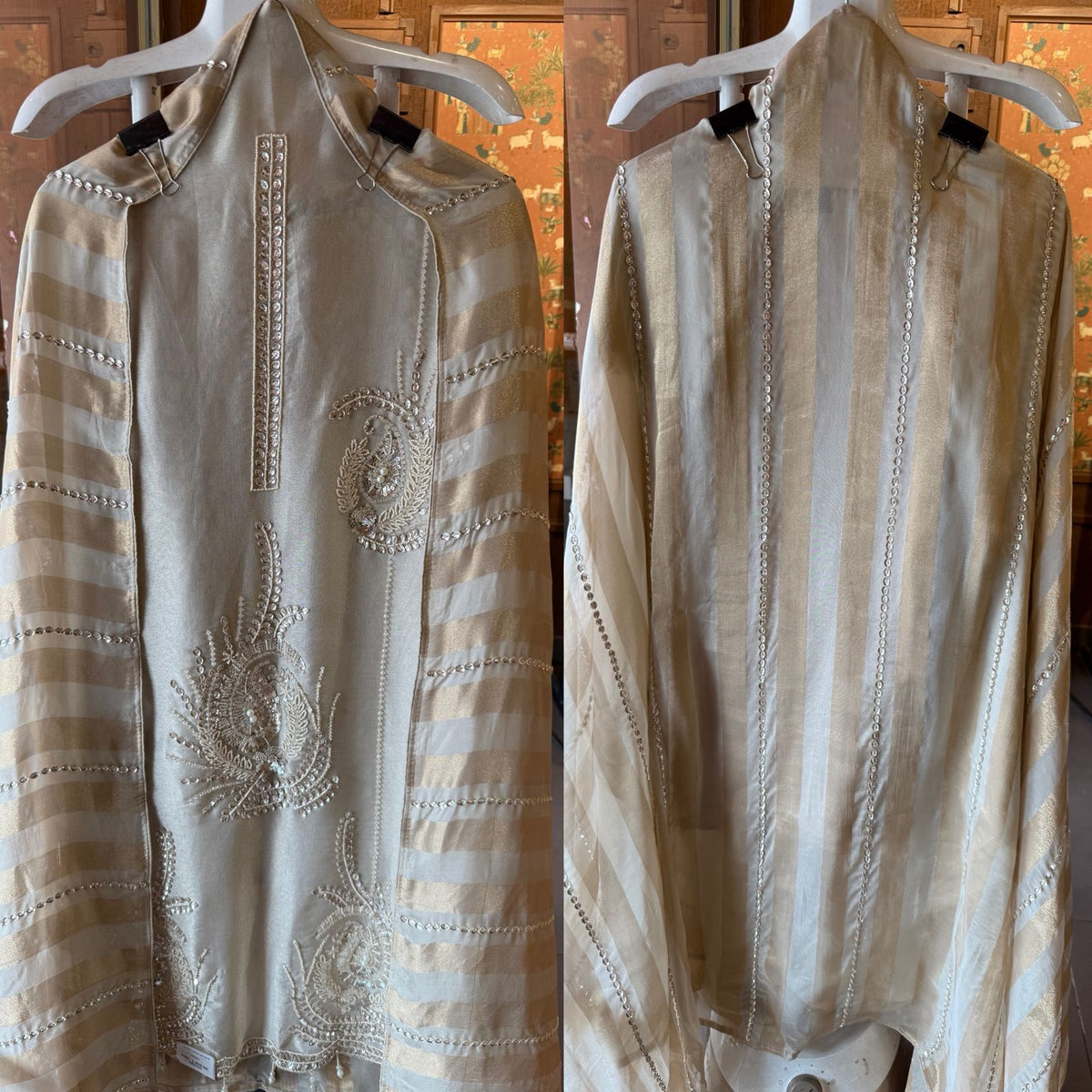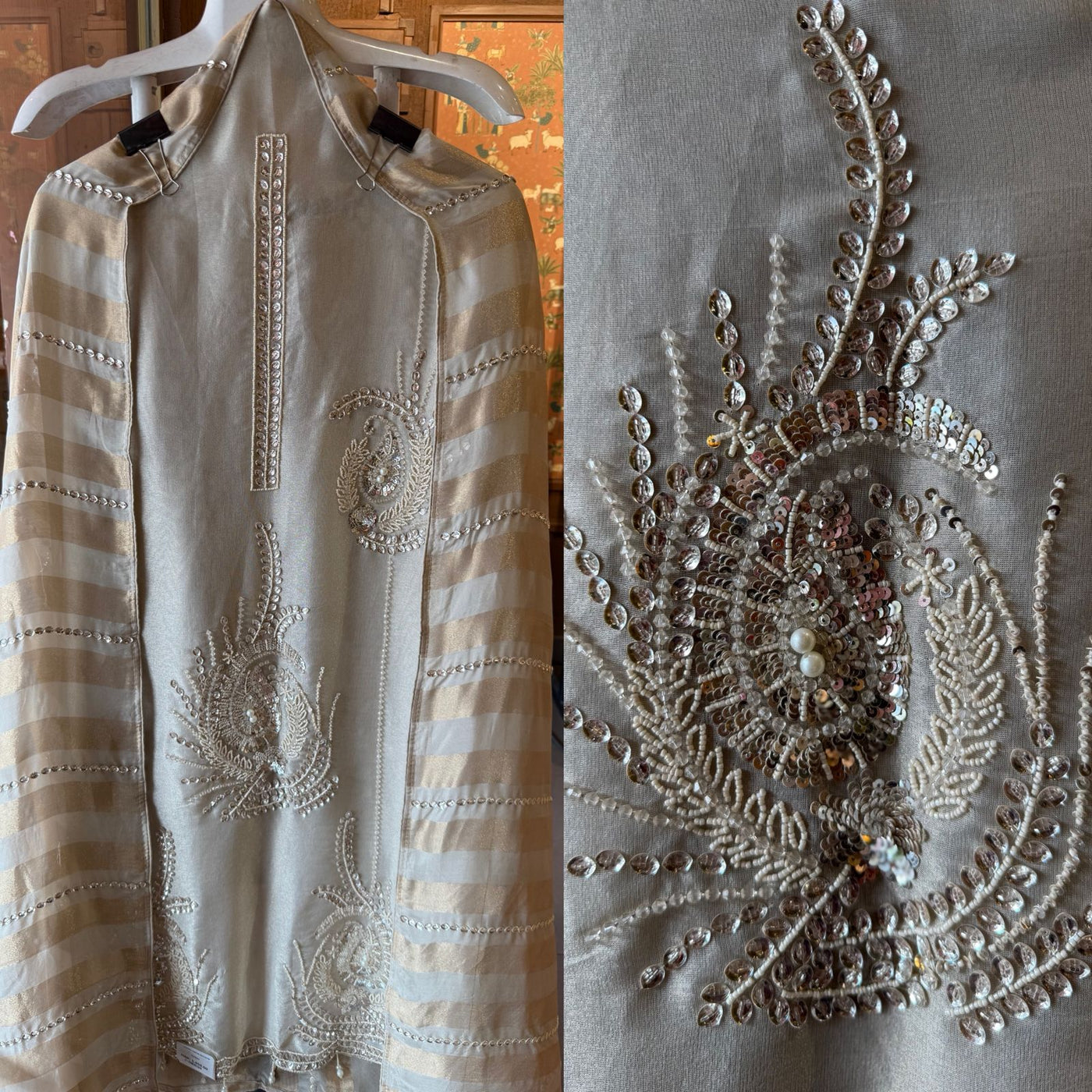 Shimmer tissue 2.5 meters full size dupatta beautiful designed with beads and pearls.