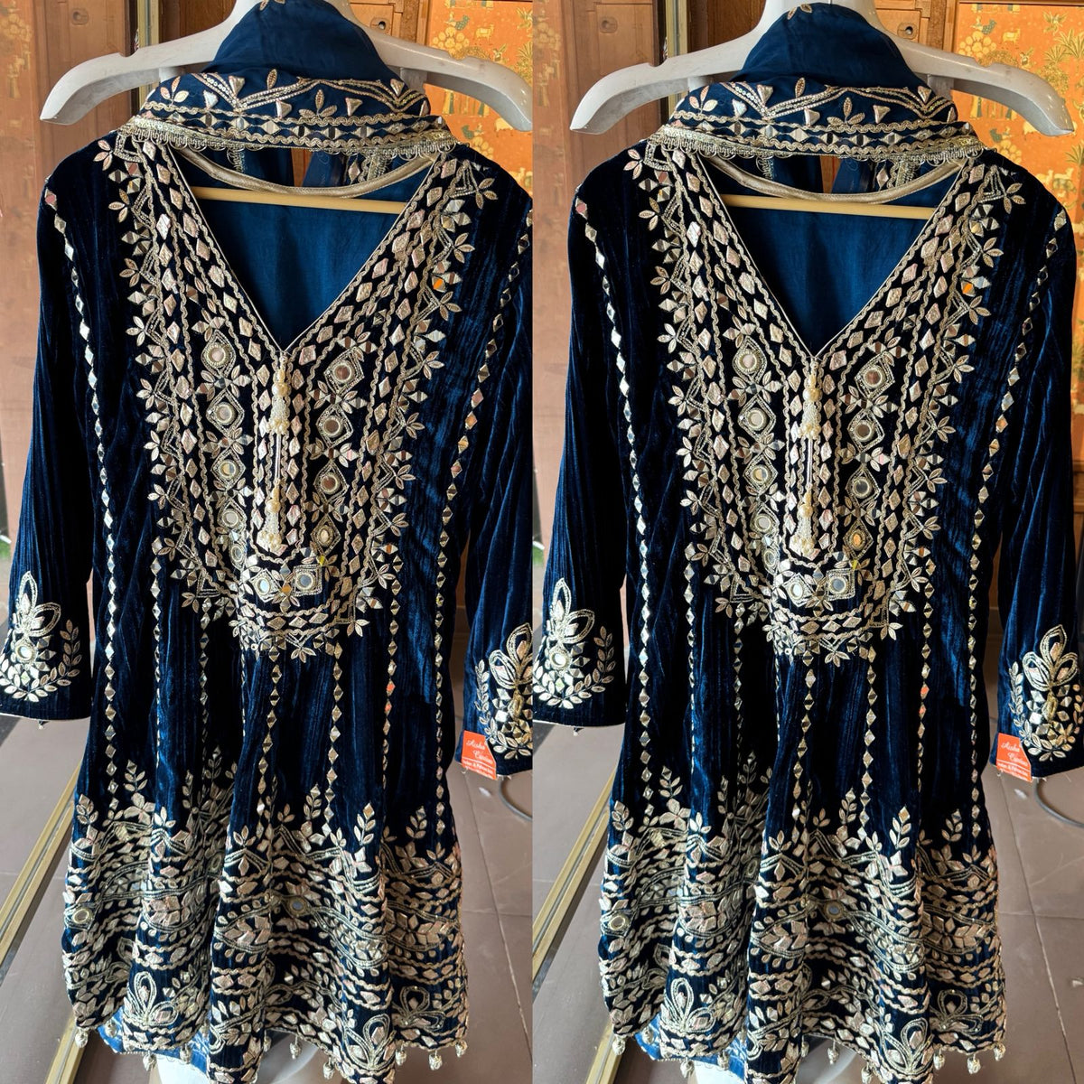 Crushed velvet  Stitched anarkali set/Ethnic suit set with heavy Gotta/mirror work.