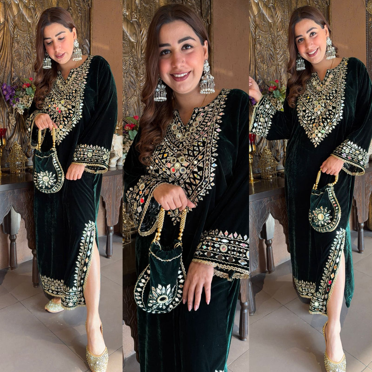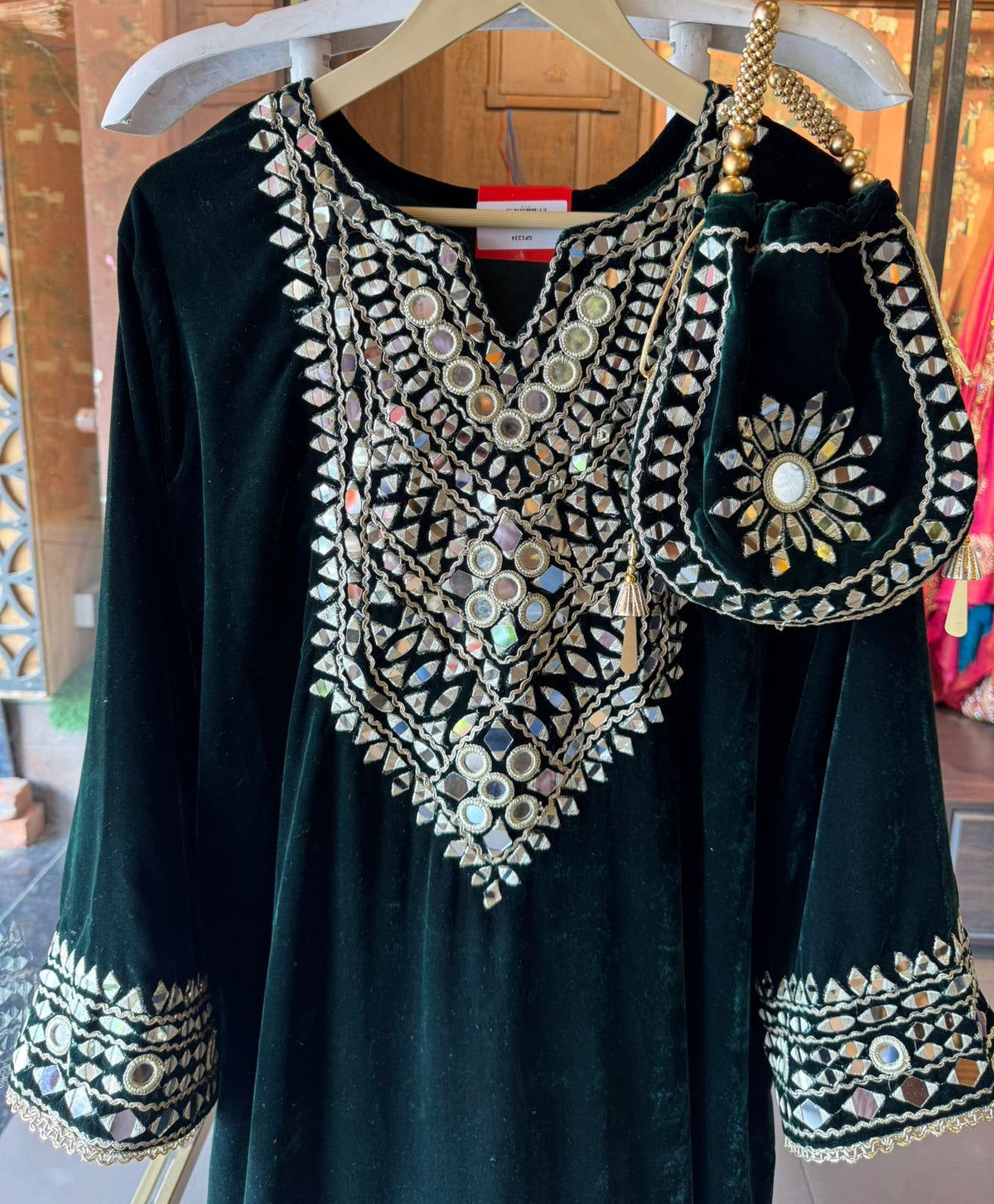 The slits are also beautifully decorated with mirror work.