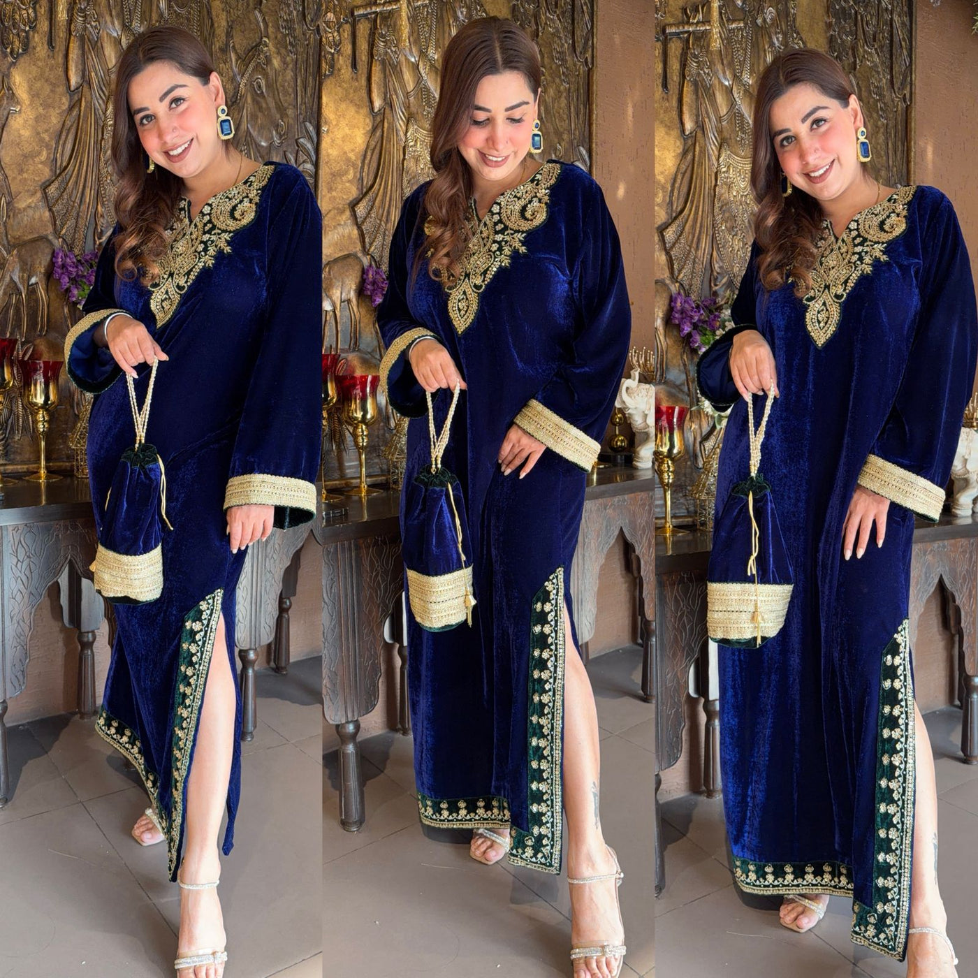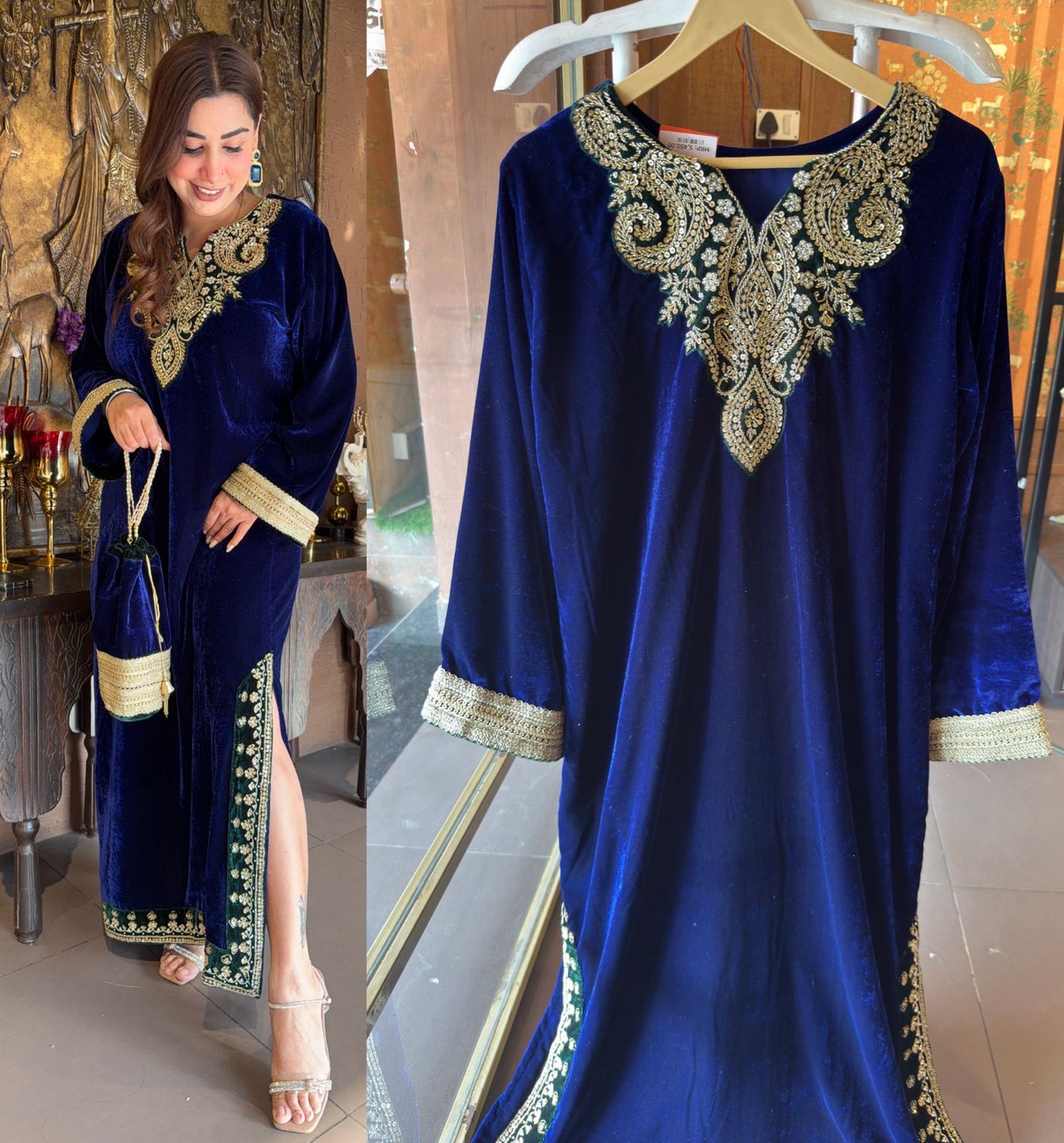 NEW VELVET LONG DRESS WITH SIDE SLITS EXCLUSIVELY AVAILABLE AT AISHA CREATIONS