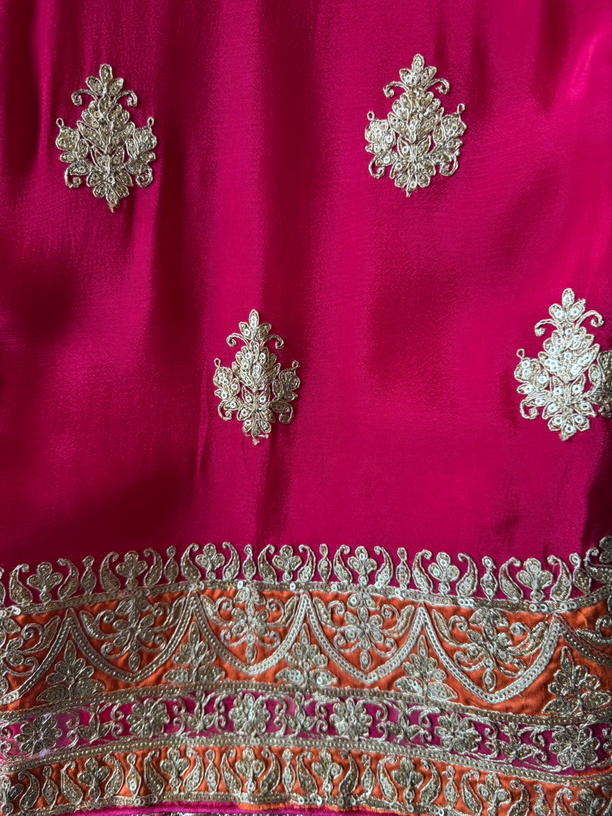 The sharar’s are fully heavily embroidered with Dori and Zari work.