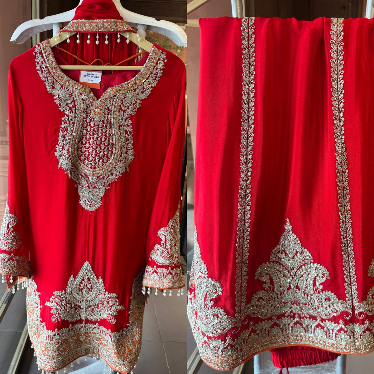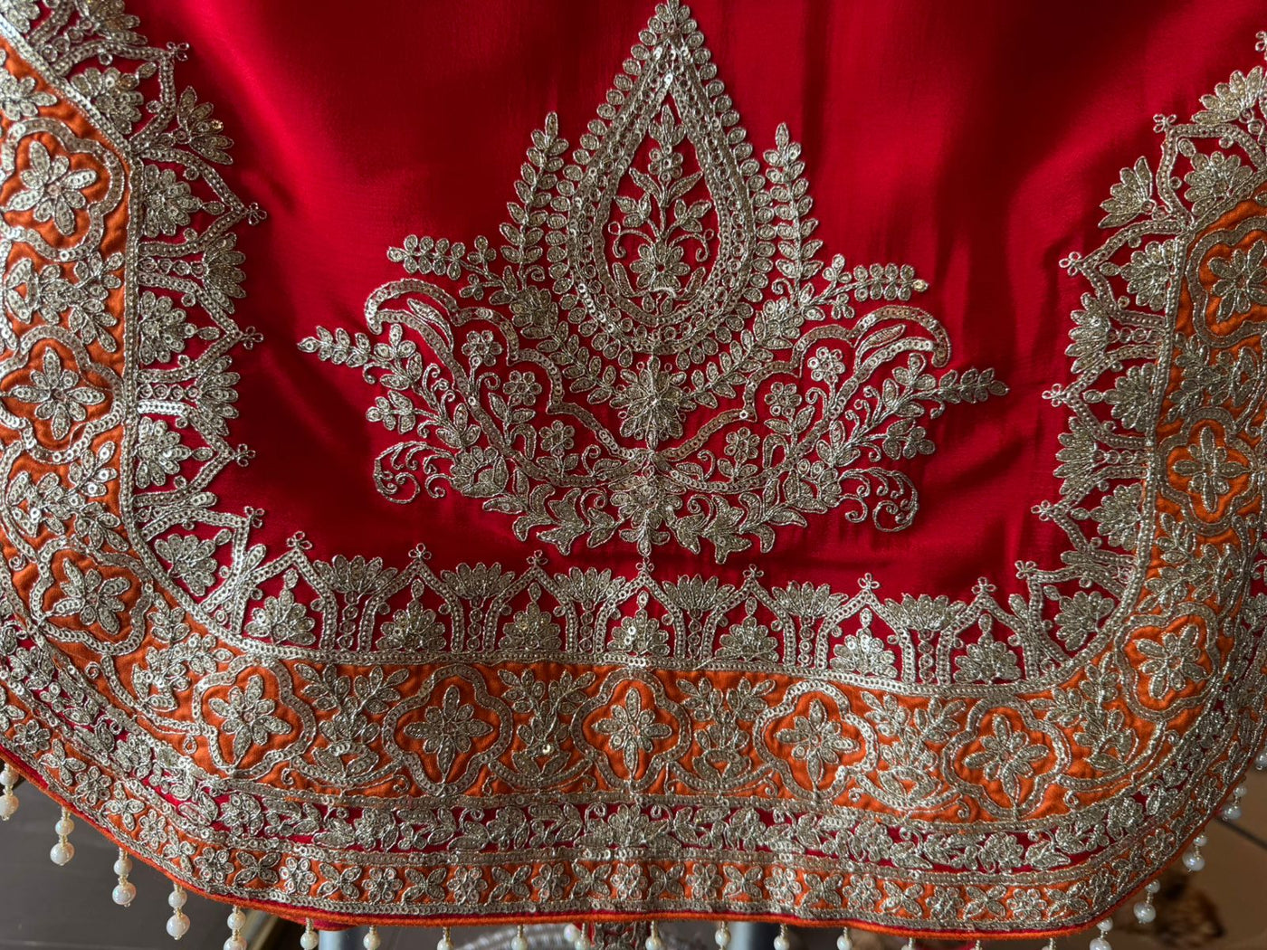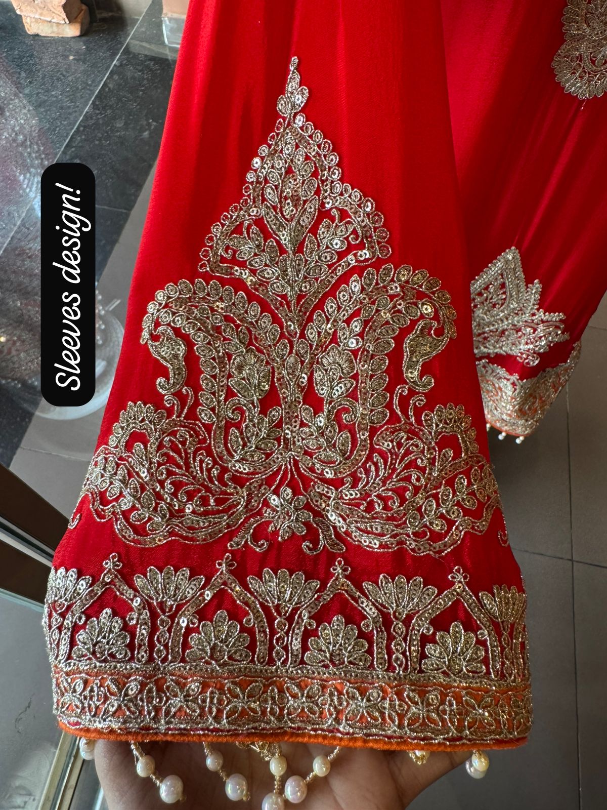 The sharar’s are fully heavily embroidered with Dori and Zari work.