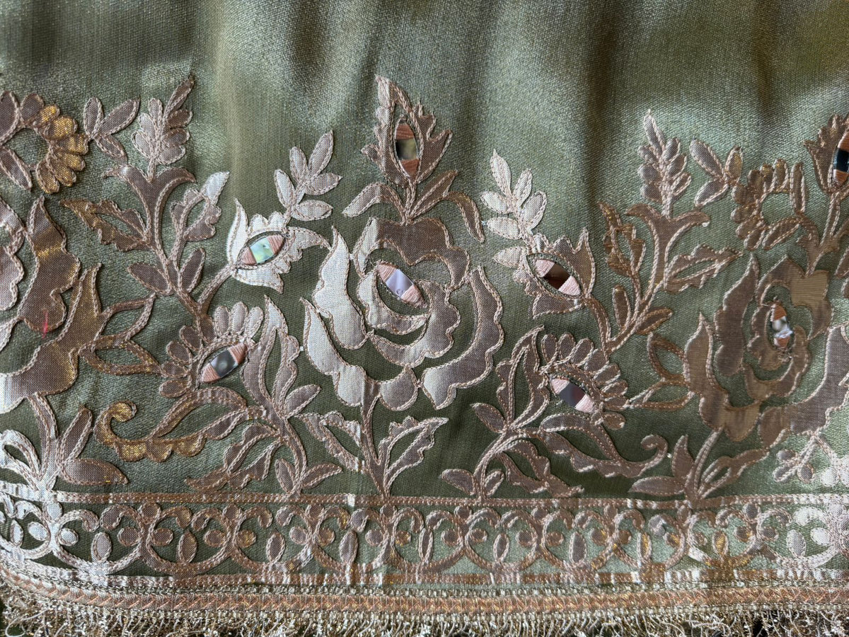 Heavy floral appliqué laser cutting on the yoke using thread/Mirror work