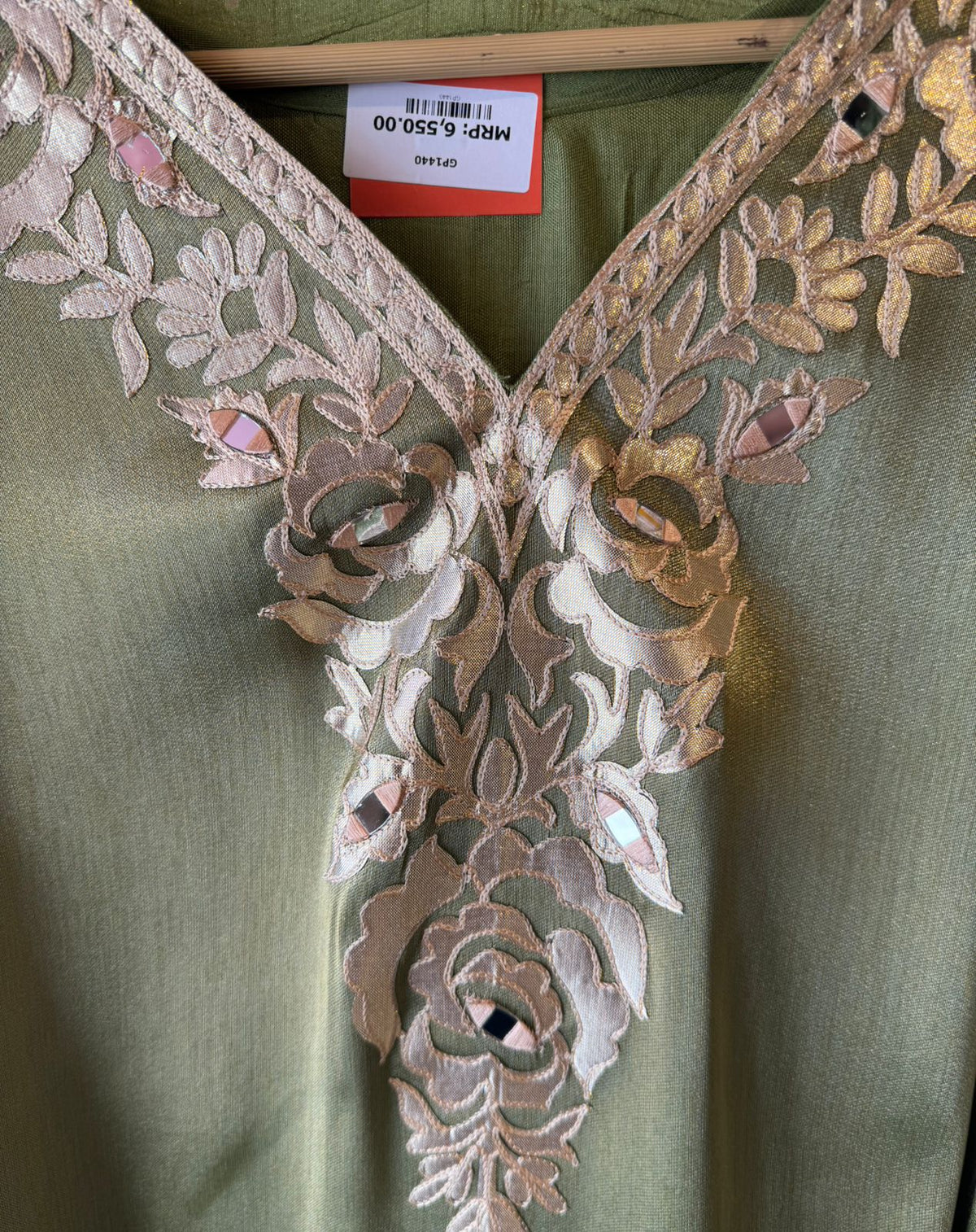 Giraffe tissue kurta with beautiful detailed embroidery with Laser cutting/Mirror and Thread Work.