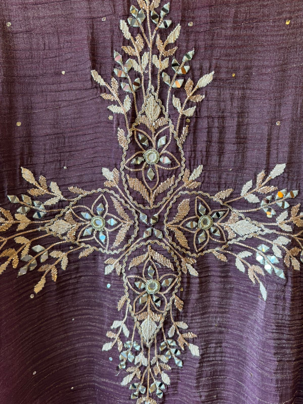 Beautiful ethnic Stitched Set with antique gold & champagne embroidery - SIZE UPTO 42 INCHES WITH EXTRA MARGINS INSIDE