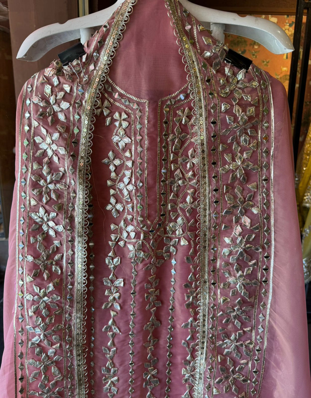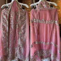 Burberry tissue dupatta with  Wide embroidered border with mirror and zari work and gotta work matching the front.