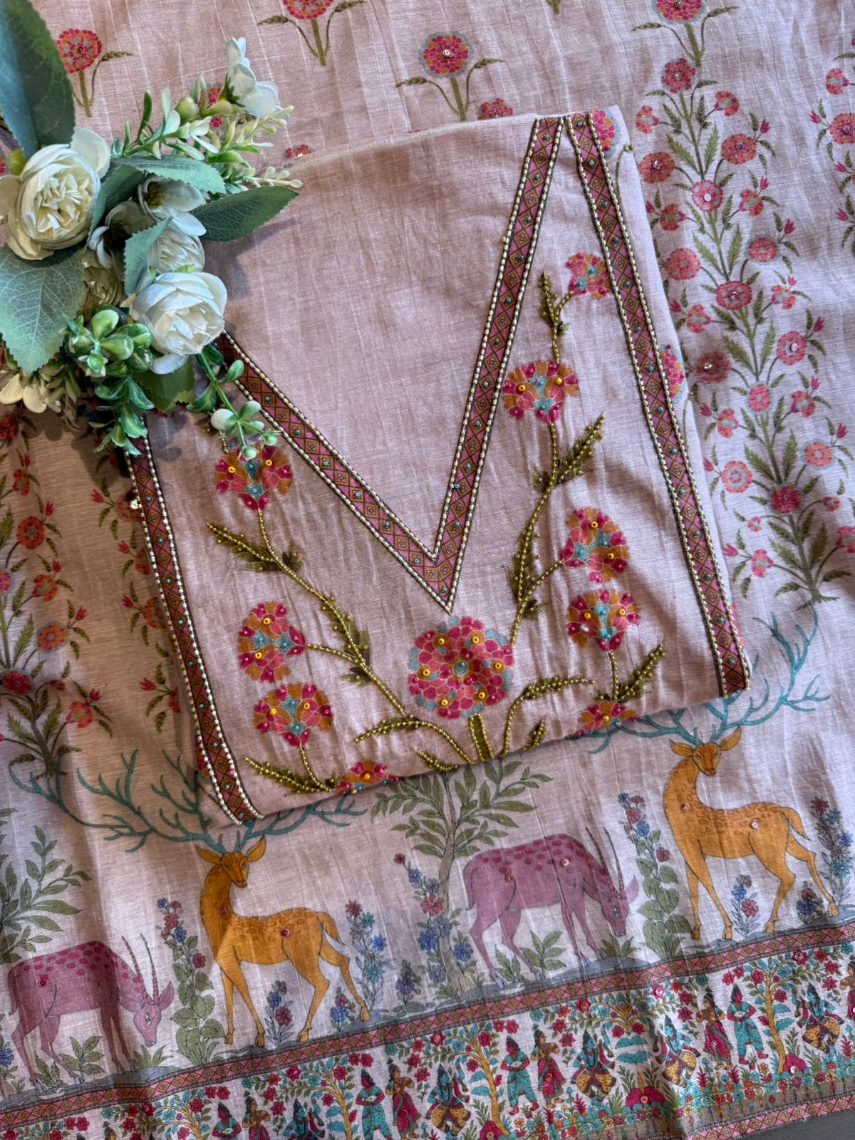 Beautiful suit on KHAADI Cotton with PICHWAI design