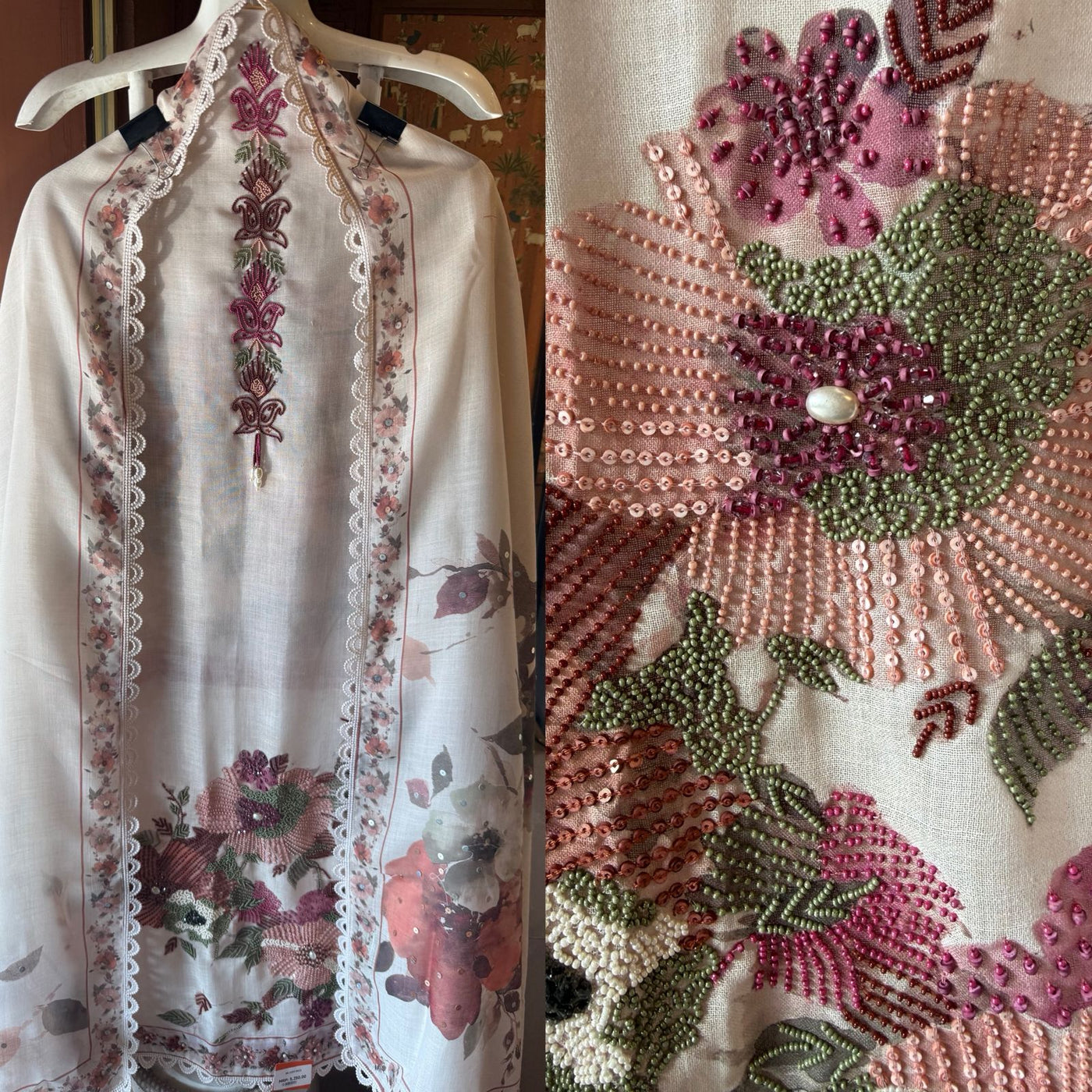 Digital floral print with delicate sequin embellishments & embroidered Neck and Front.