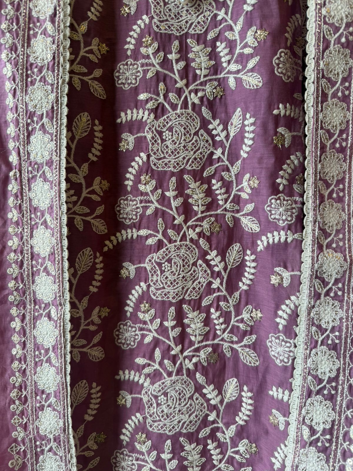 Fine thread embroidery (chikankari–inspired)