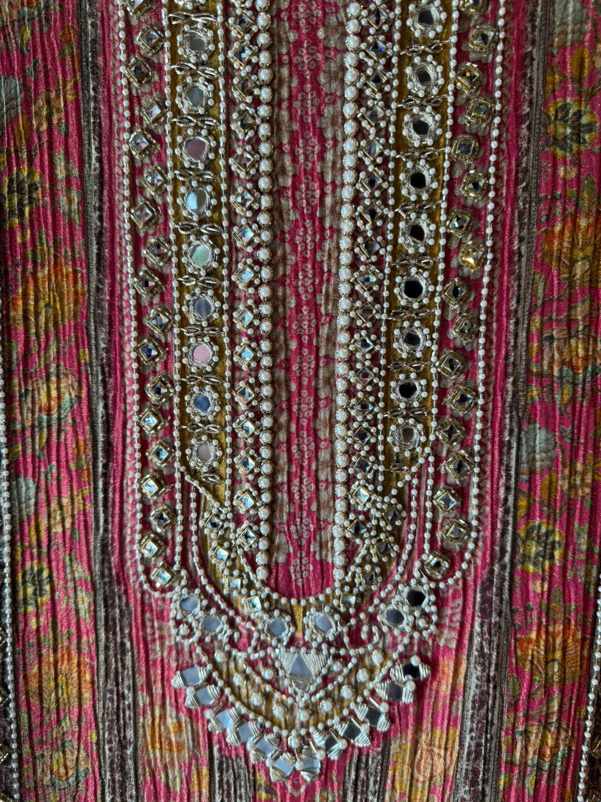 Rich hand embellishment using mirrors, pearls & beads