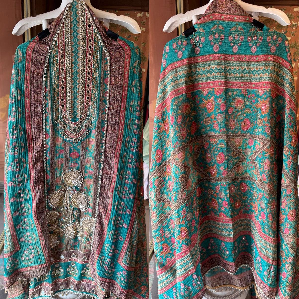 Crushed tissue Mirror & Pearl Embellished Unstitched suit