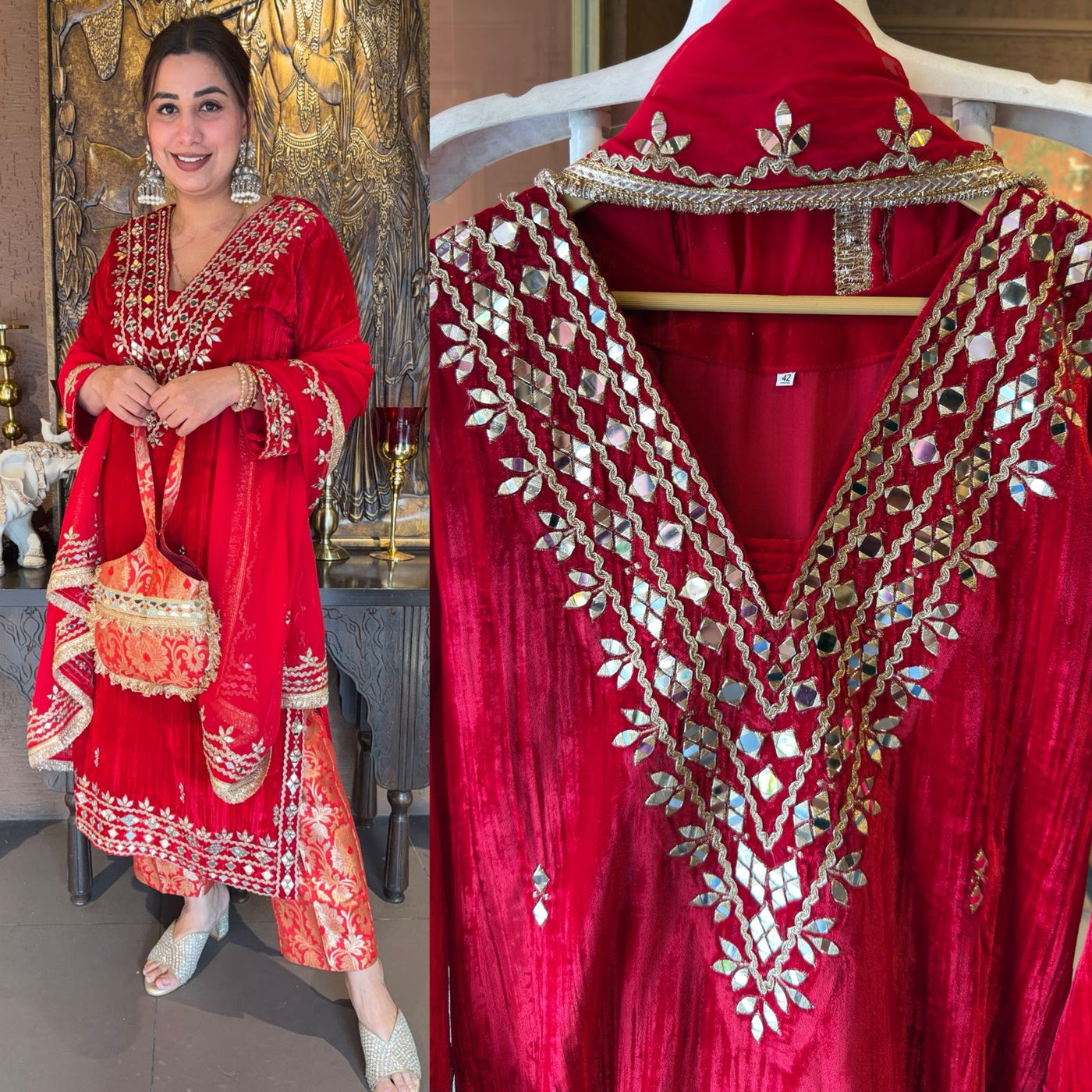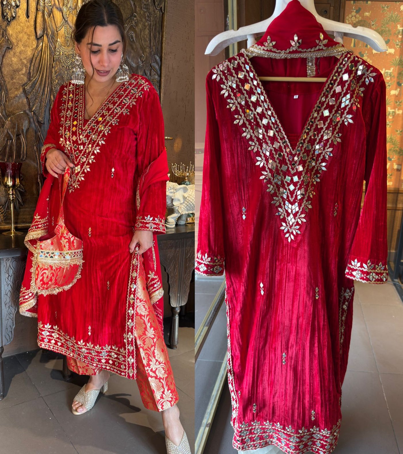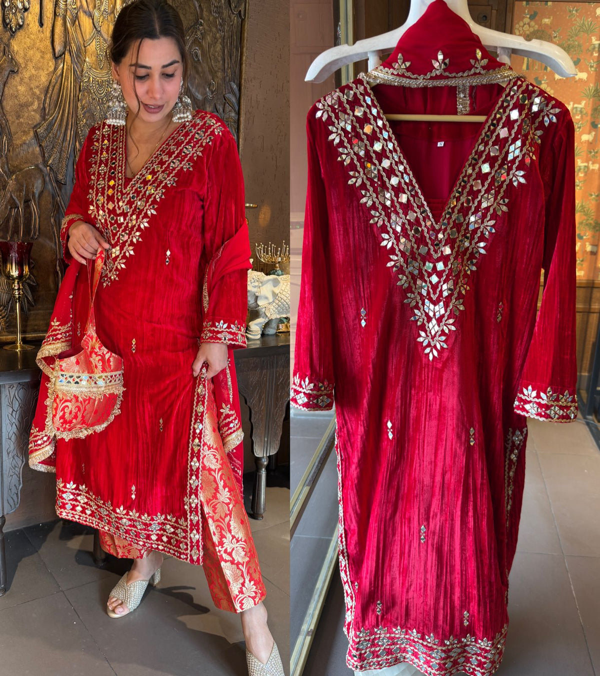 Velvet drapes heavily and adds depth to mirror work, making the embroidery stand out beautifully.