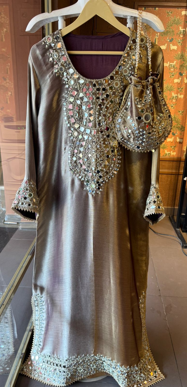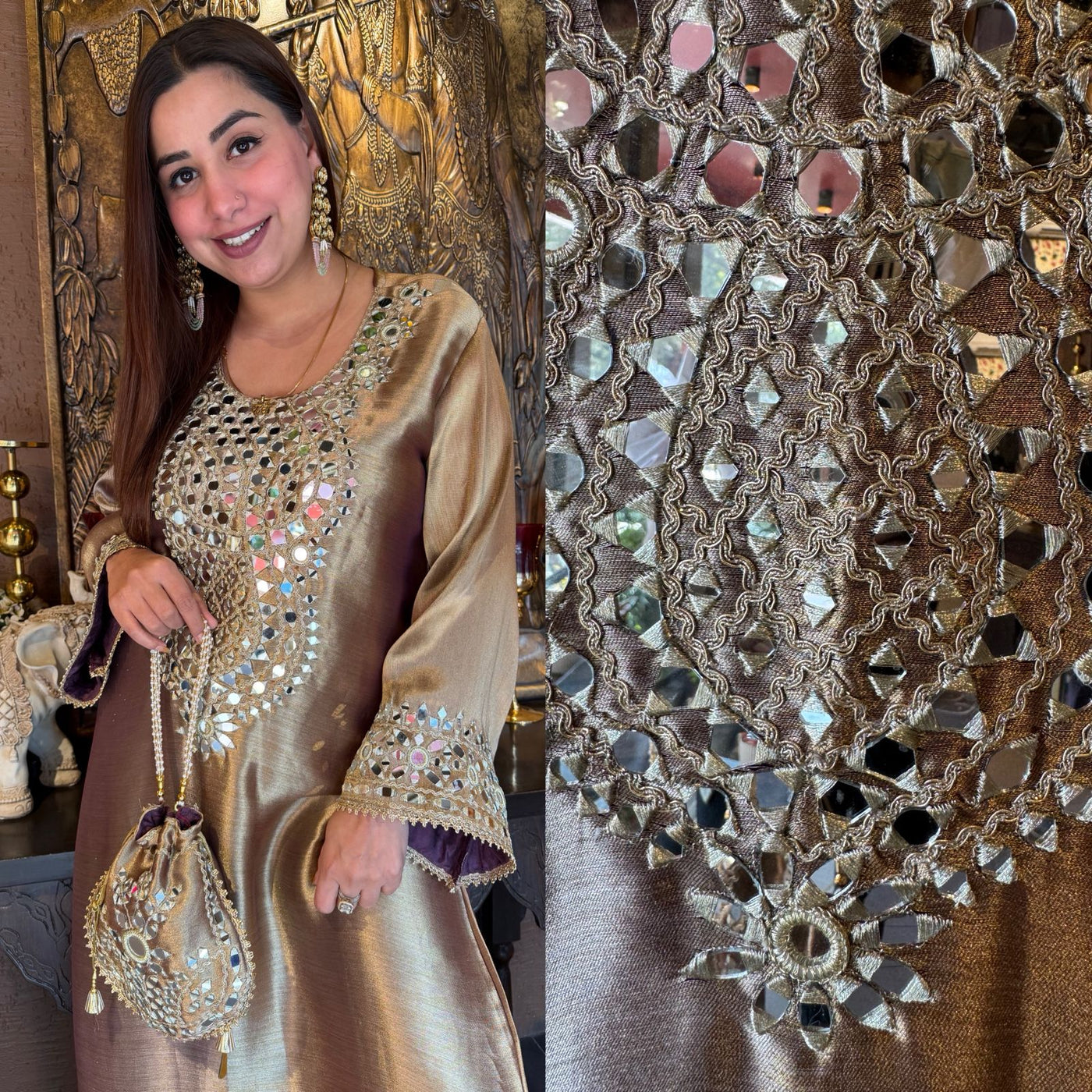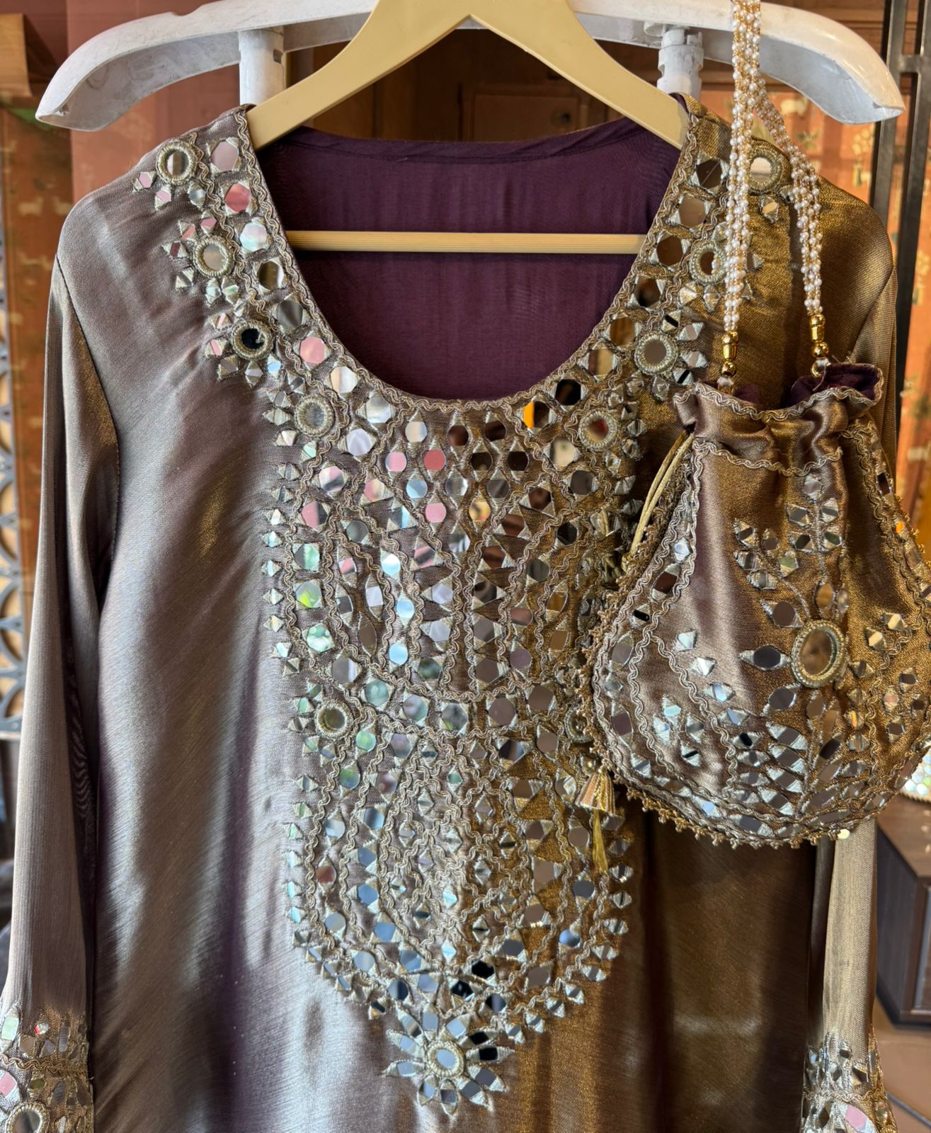 Matching potli bag with mirror work