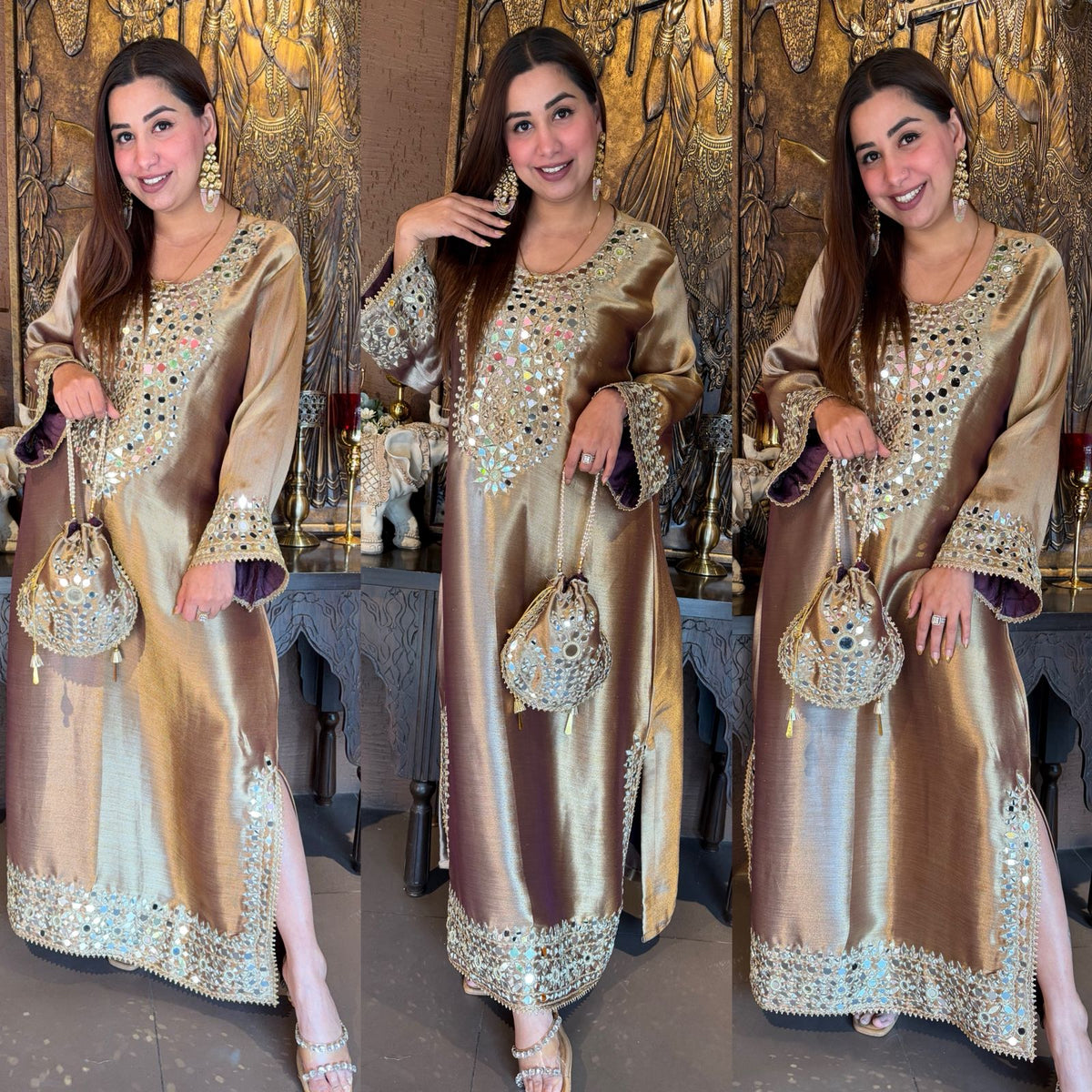• Broad mirror-work border at the hemline