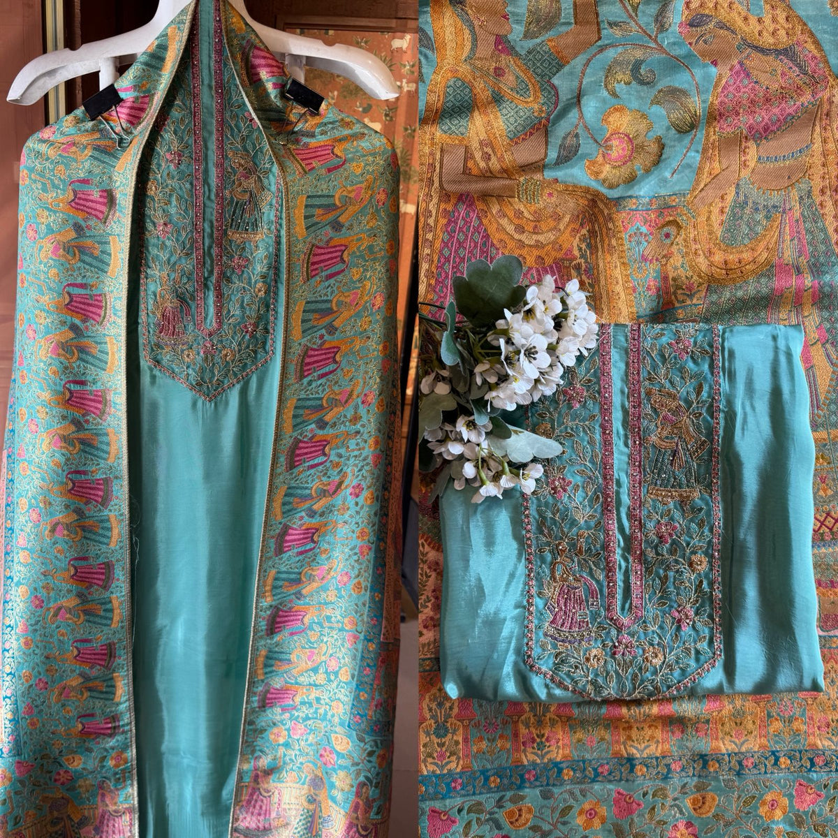 Soft silk Shirt (Unstitched) with embroidered necklines