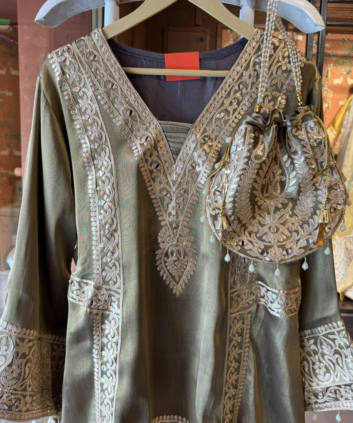 Delicate latkan (tassel) detailing at the hem