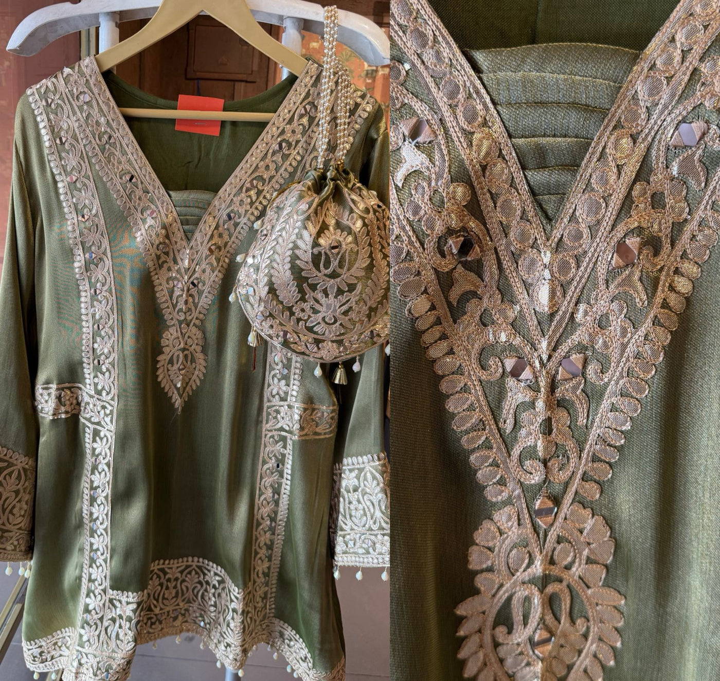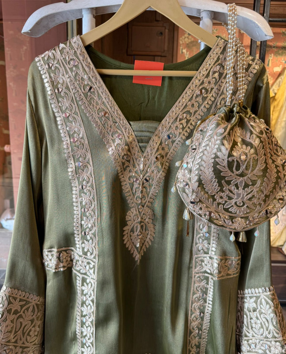 Delicate latkan (tassel) detailing at the hem