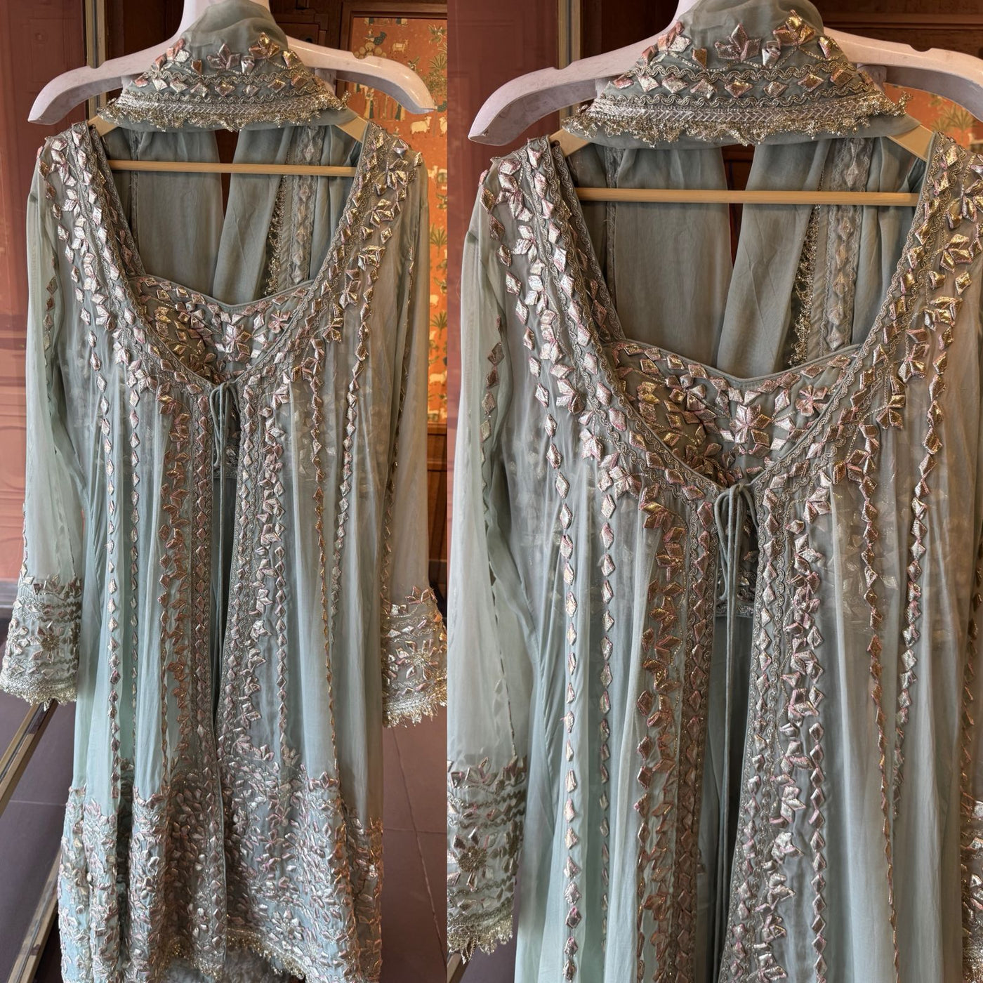 Heavily embroidered cuffs with gotta work and scalloped finish
