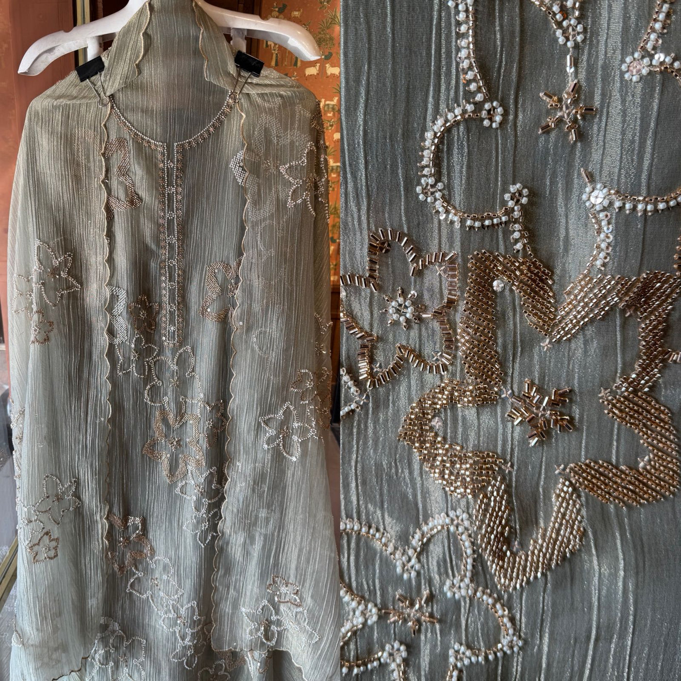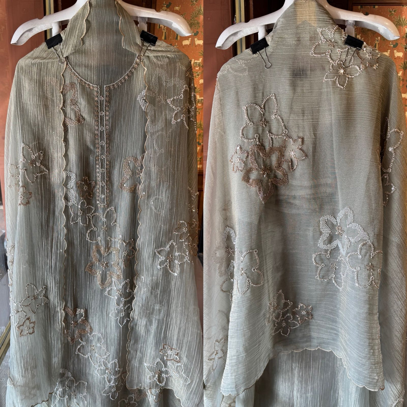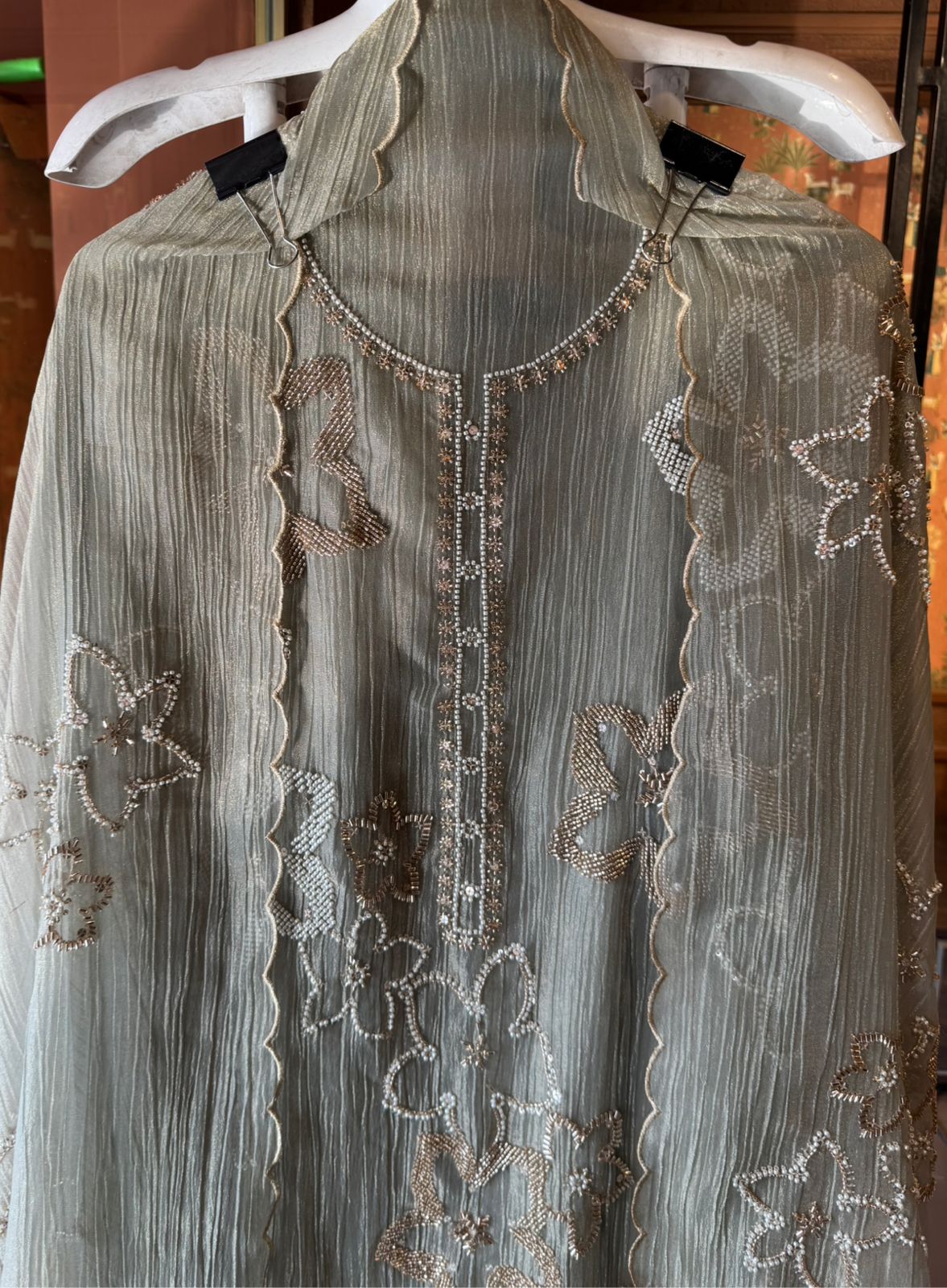 Sheer, lightweight crinkled tissue fabric, Beautiful unstitched Suit set.