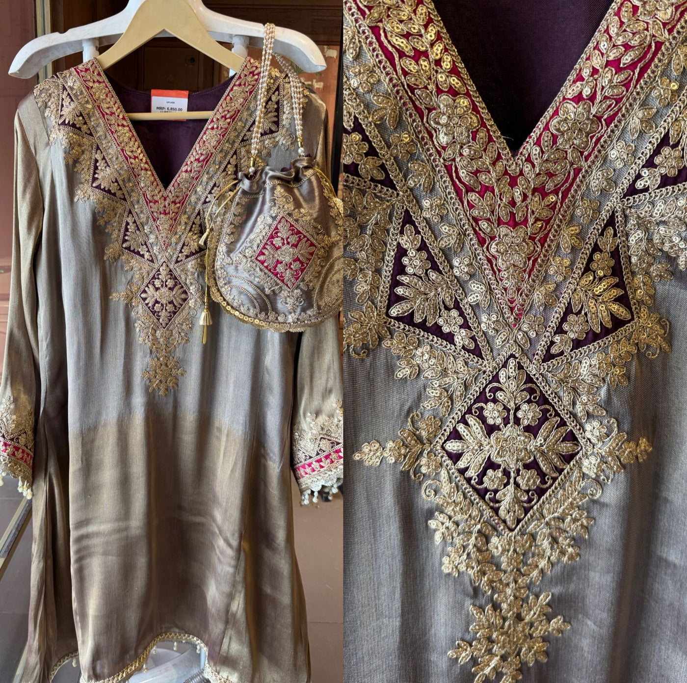Heavily embellished with zardozi, resham, and sequins and Dori.