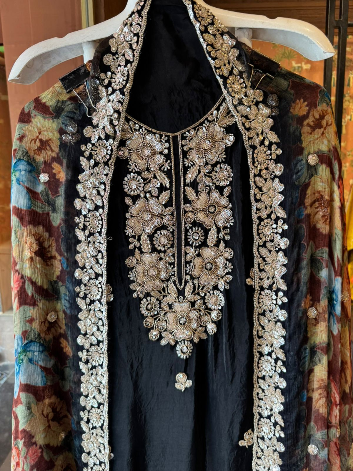 Black in colour with digital printed floral dupatta.