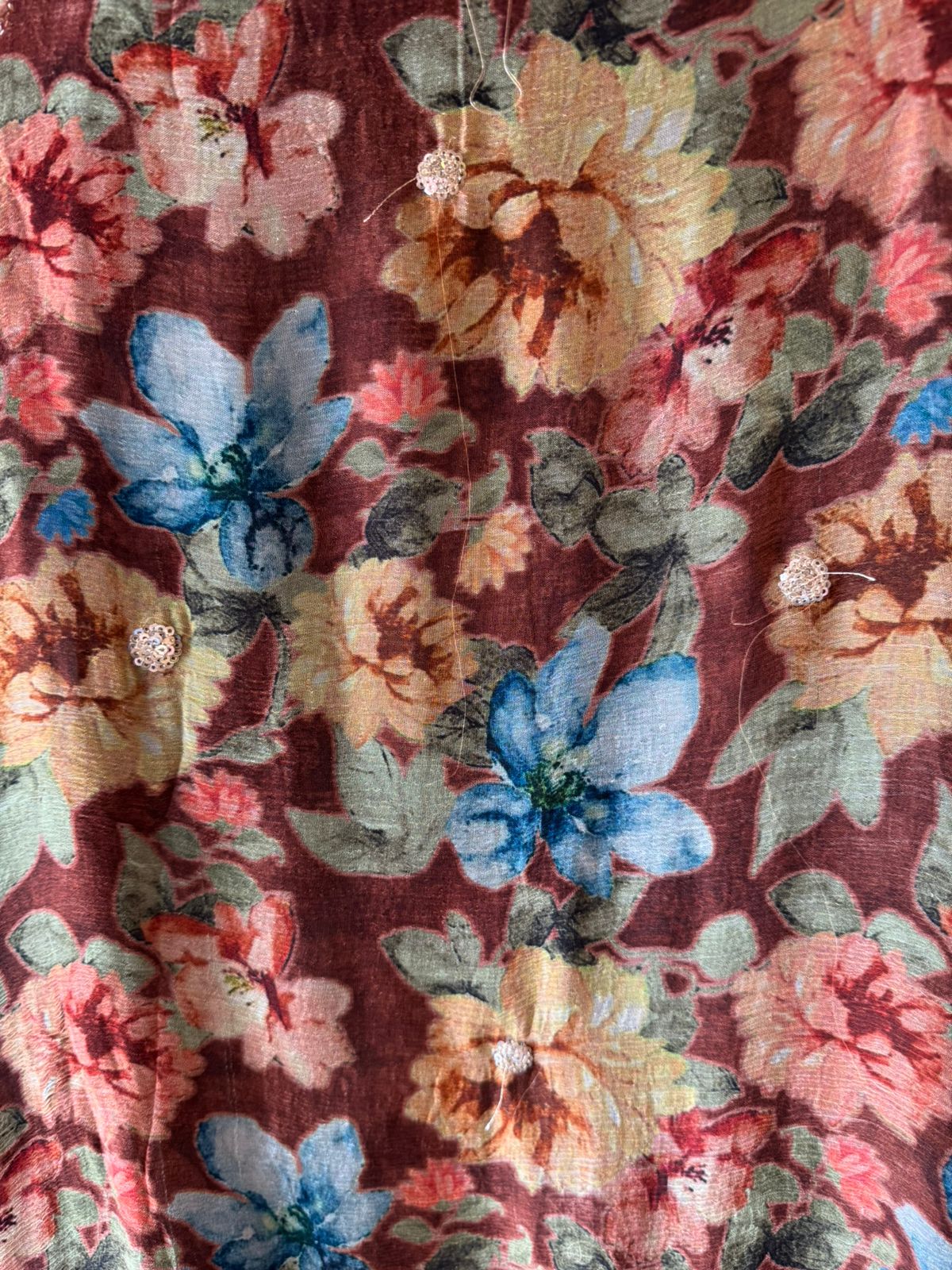 Scattered small floral butis With hand embroidery done.
