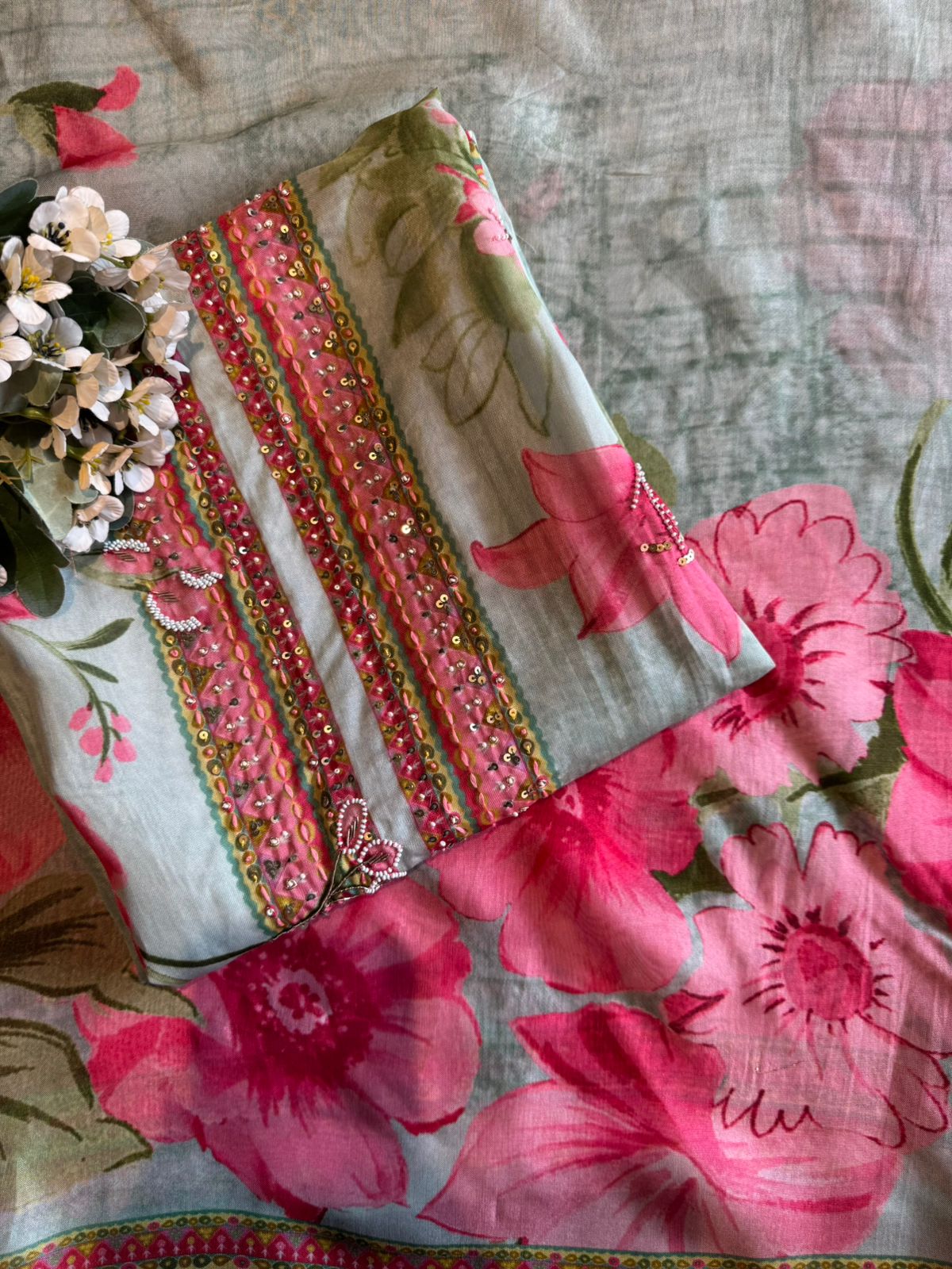 Organza Unstitched Suit set with Digital Printing ( It has a straight, relaxed silhouette)