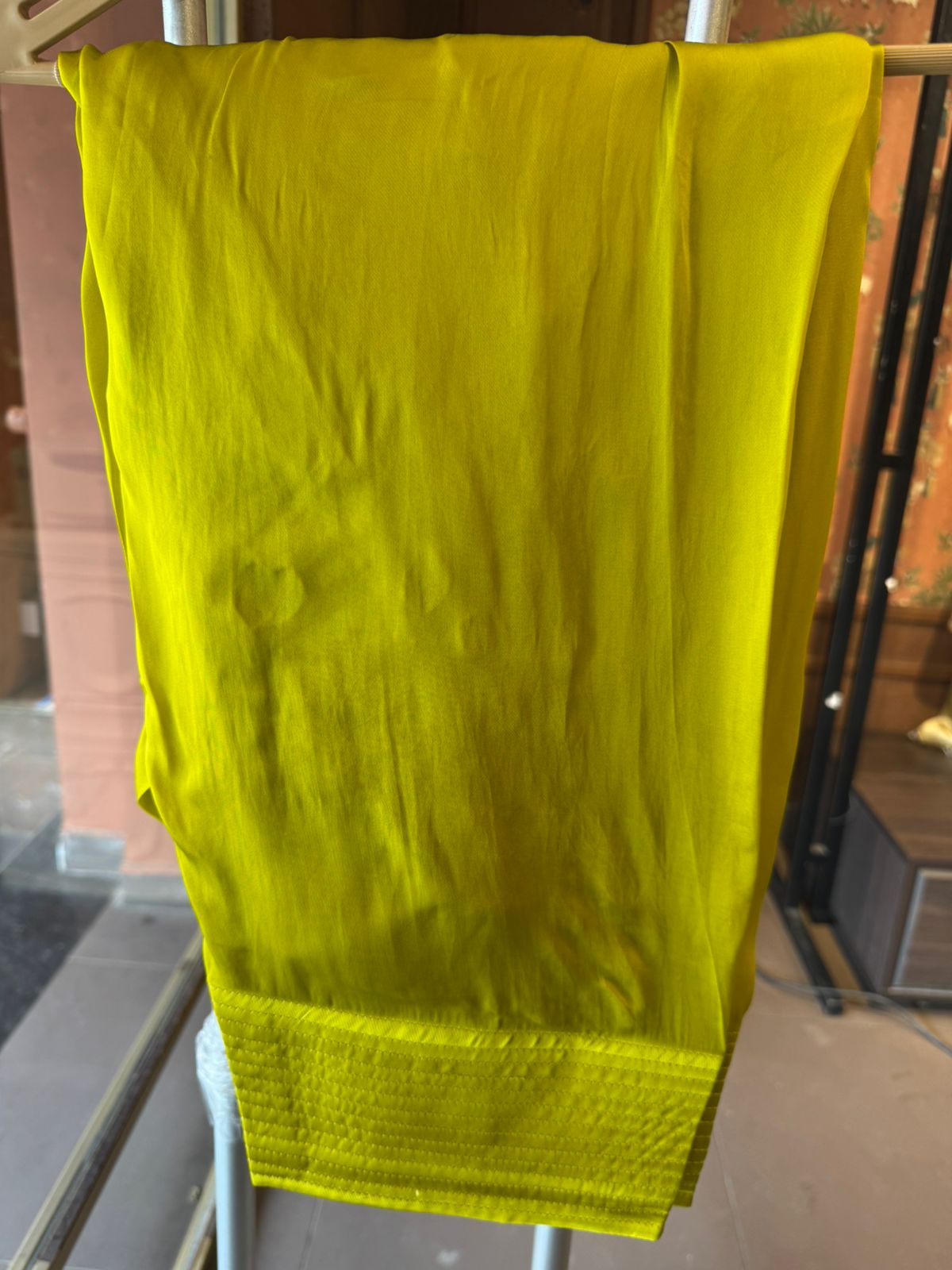 Fabric: Premium soft Organza Satin blend in refreshing lime yellow tone