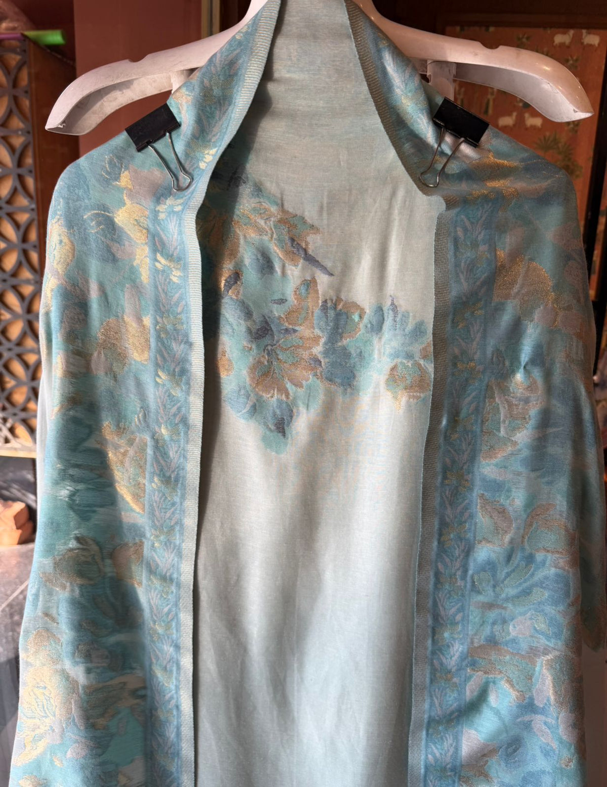 Contrast floral border running along the length of the dupatta with Fine solid edging