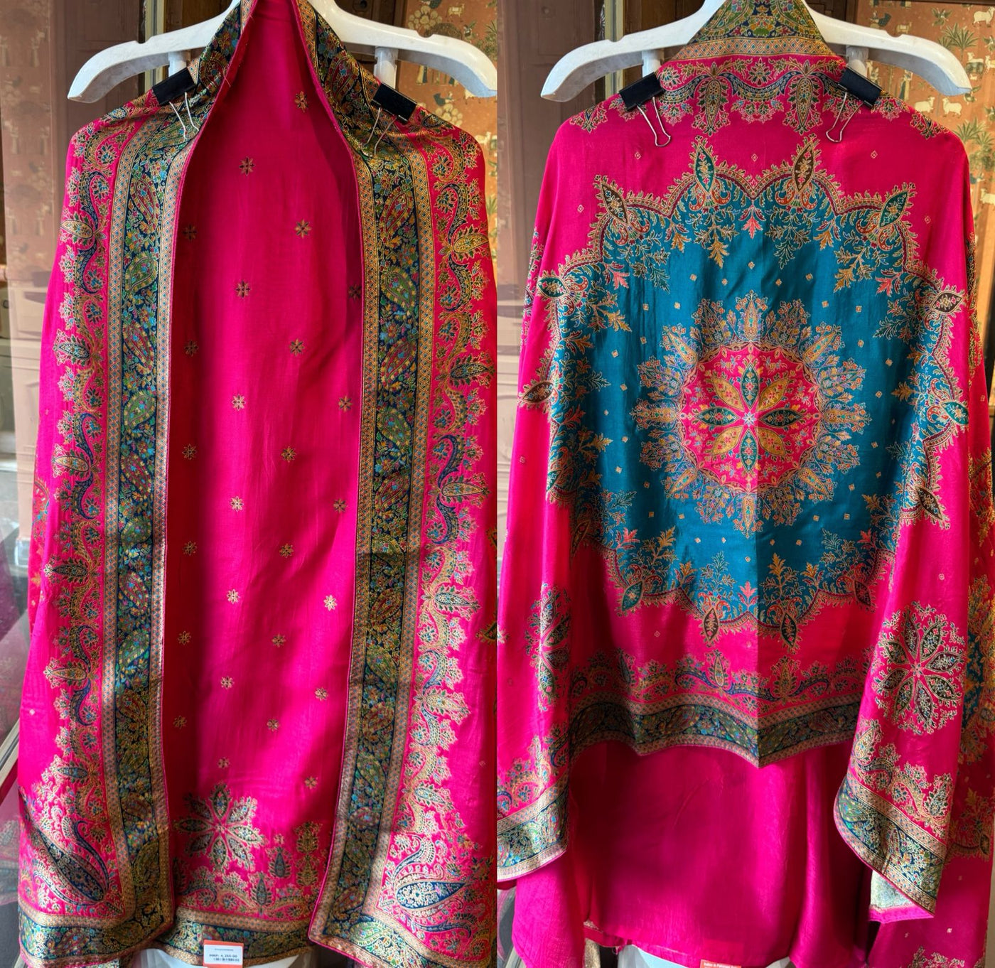 Vibrant base colour with intricate multicolour Mughal-inspired digital print