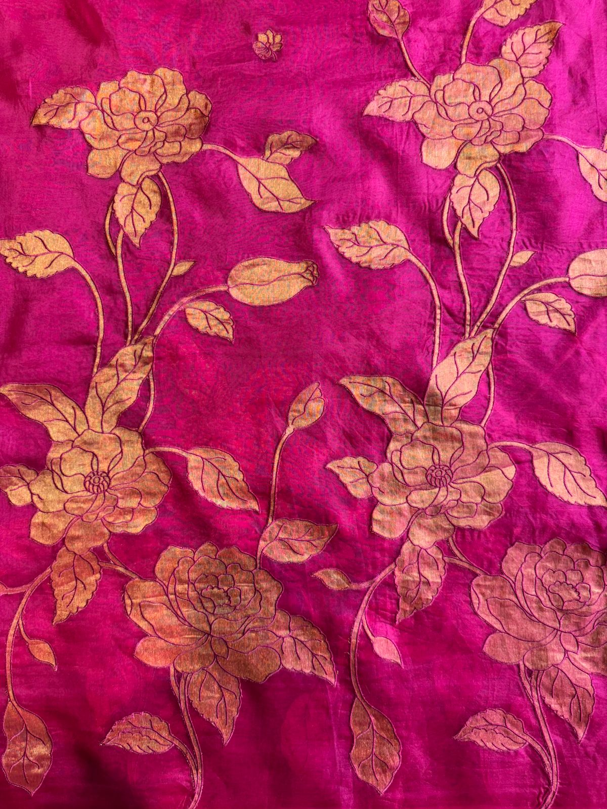 Muted antique gold, Beautiful shimmer gold appliqué floral patchwork done.