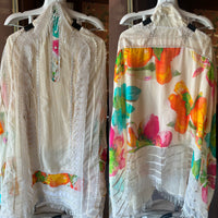 Mul linen digital printed Dupatta with organza fabric used with lace design.