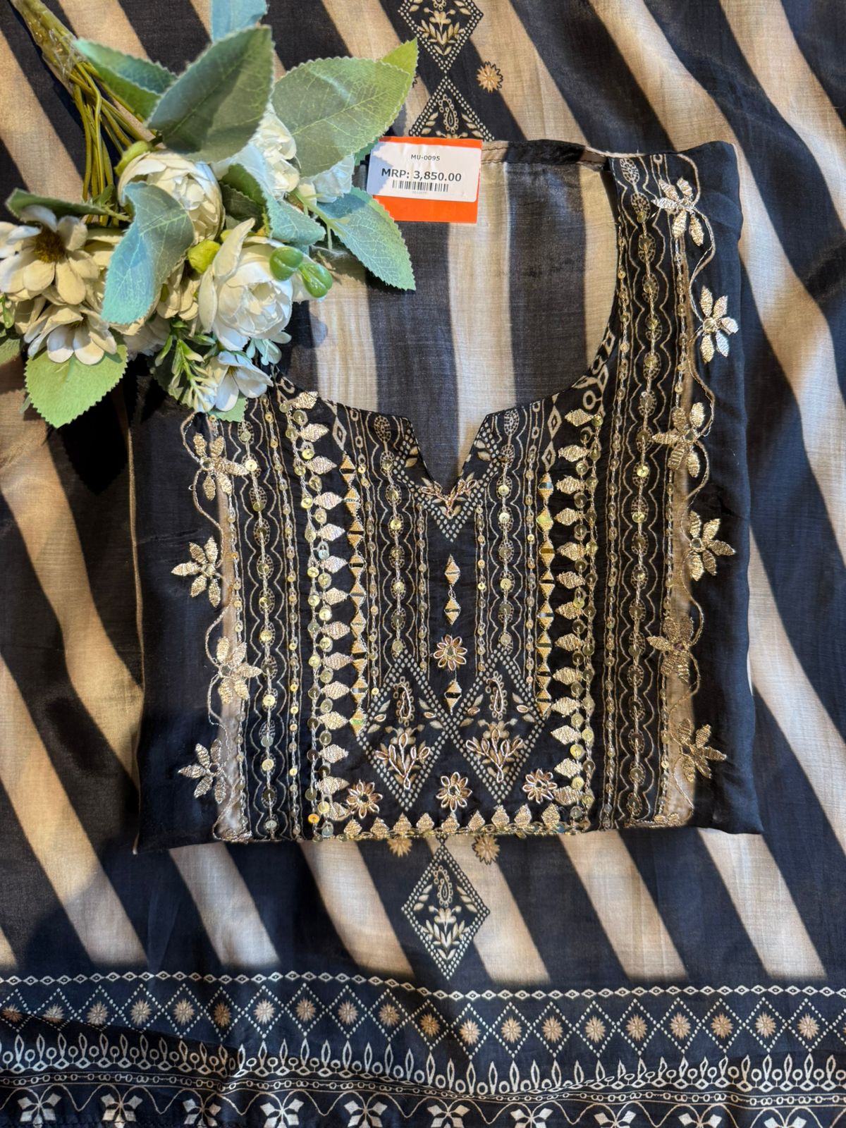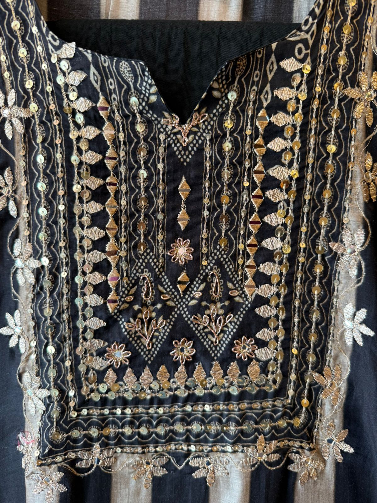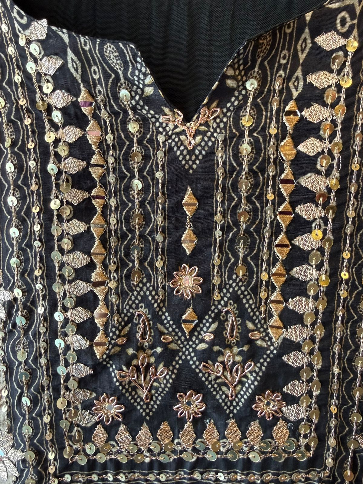The neck is beautifully decorated with Sippi/Leather Patti’s/Embroidered with metallic wires.