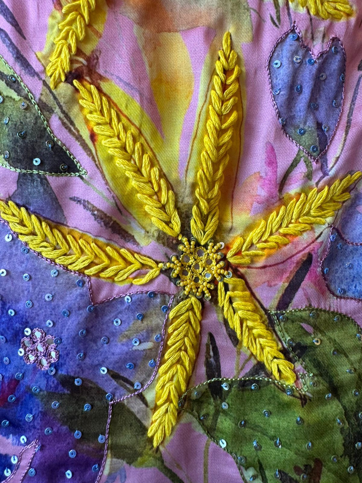 Soft organza digital printed dupatta with sequence highlighting done all over the print.